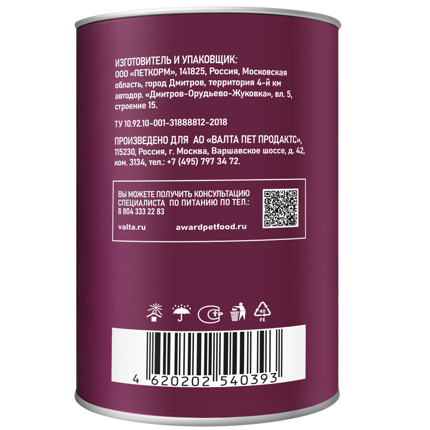 | Тип корма | влажный |