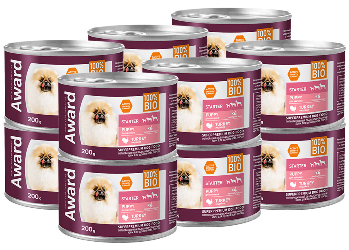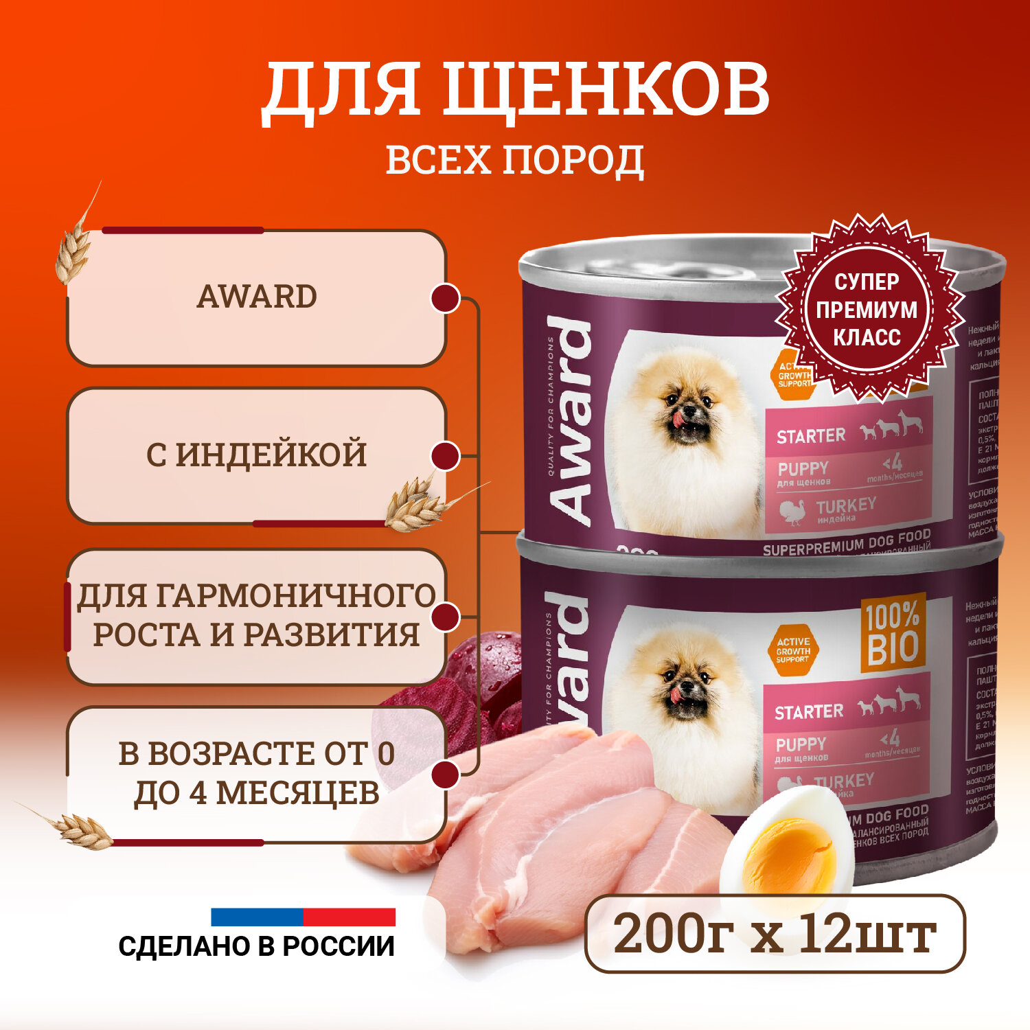 Купить AWARD PUPPY STARTER TURKEY для щенков, беременных и кормящих сук паштет с индейкой банка 200 гр х 12 шт