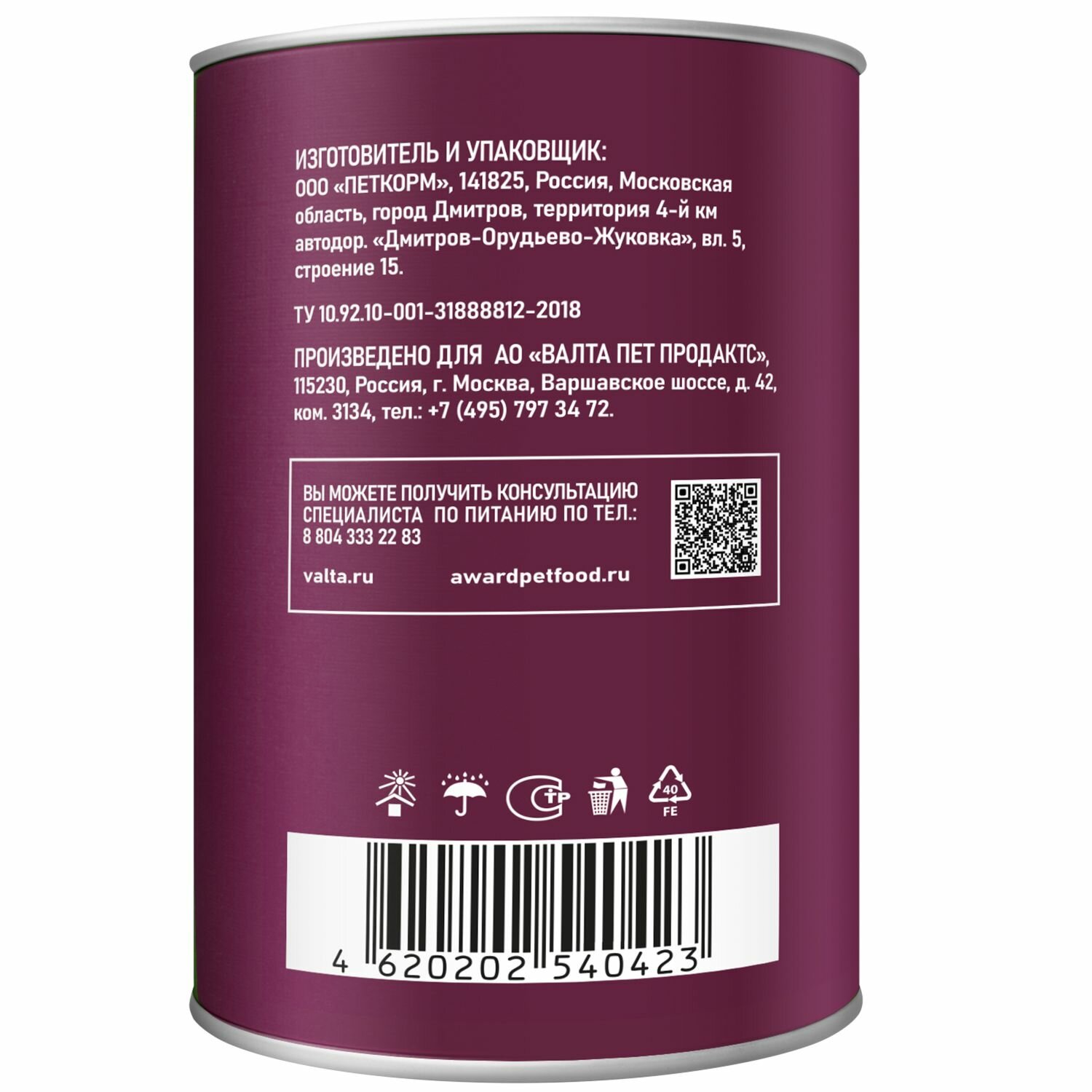 Влажный корм для собак AWARD, паштет из ягненка с яблоком, 400 г