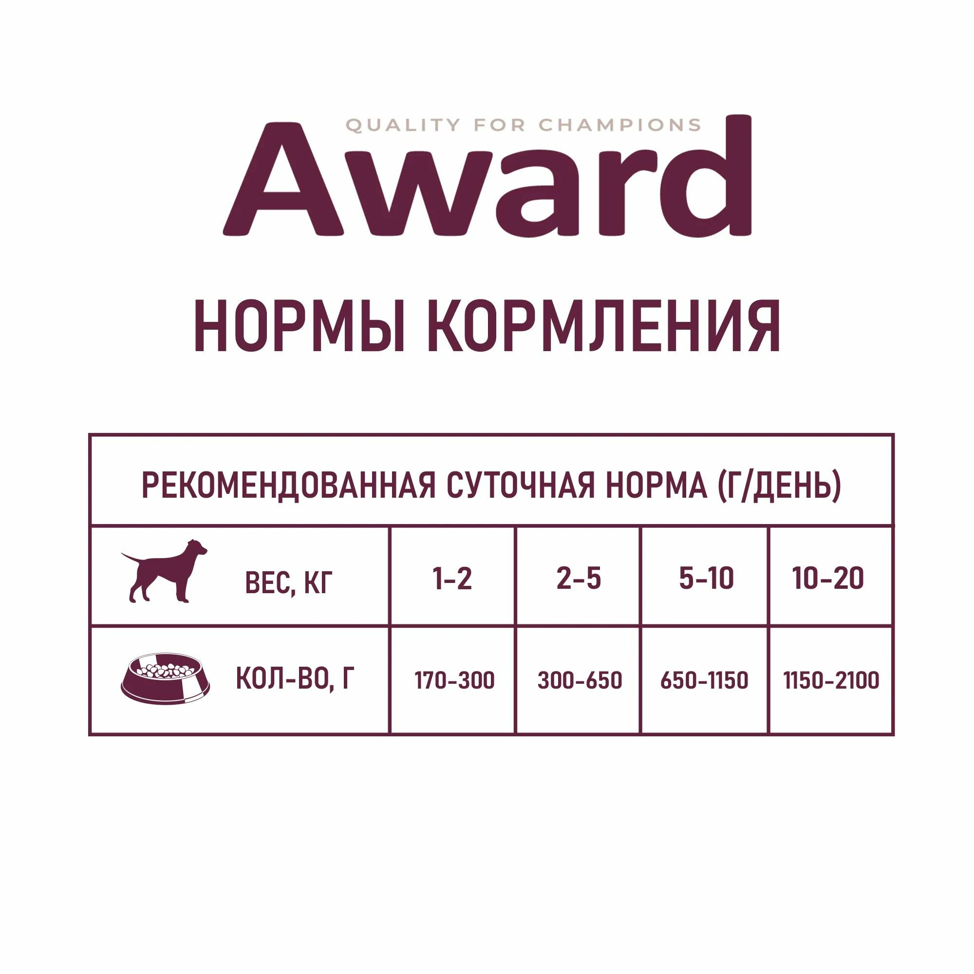 AWARD сухой корм для взрослых собак средних пород, с индейкой, курицей, морковью и черной смородиной - 2 кг