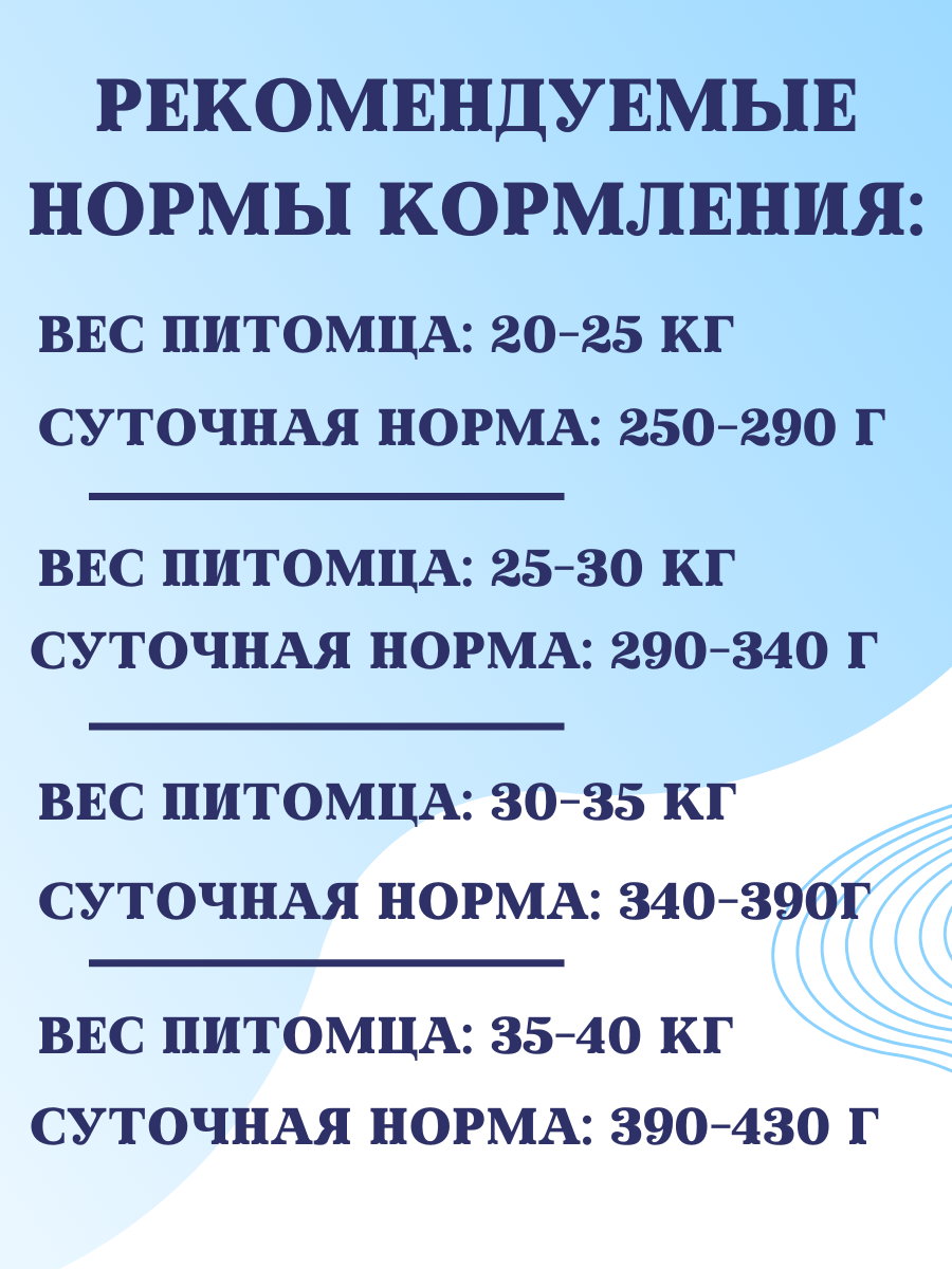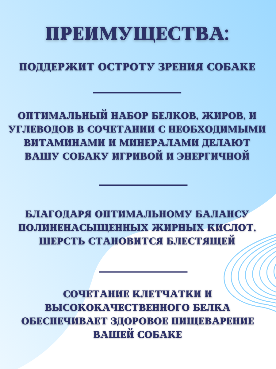 | Возраст животного | взрослые (1-6 лет) / пожилые (7+) / щенки (до 1 года) |