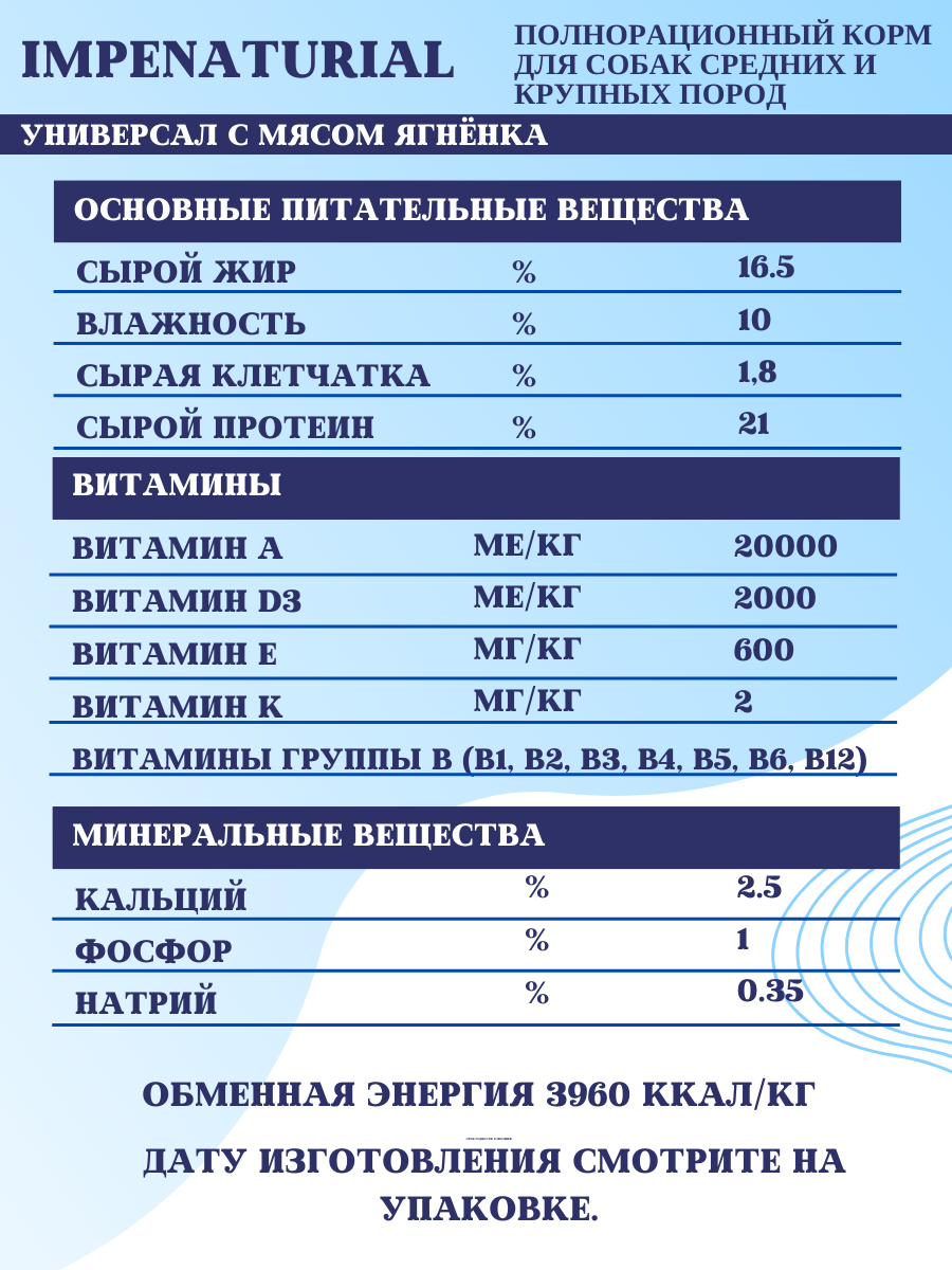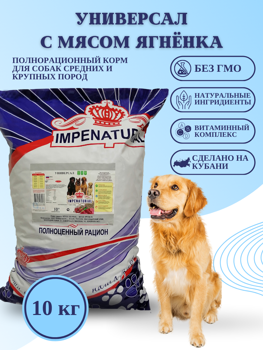 Сухой корм Универсал для собак средних и крупных пород с мясом ягнёнка Империал 10кг интересное: