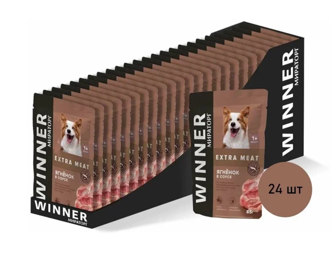 WINNER EXTRA MEAT для взрослых собак всех пород с ягненком в соусе (85 гр х 24 шт)