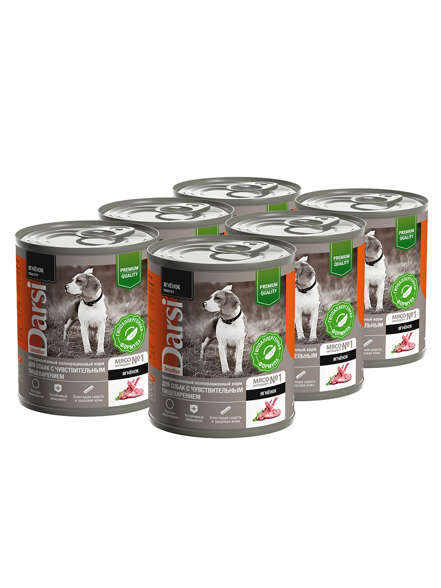 Влажный корм для собак Darsi паштет, при чувствительном пищеварении, ягненок 6 шт. х 850 г
