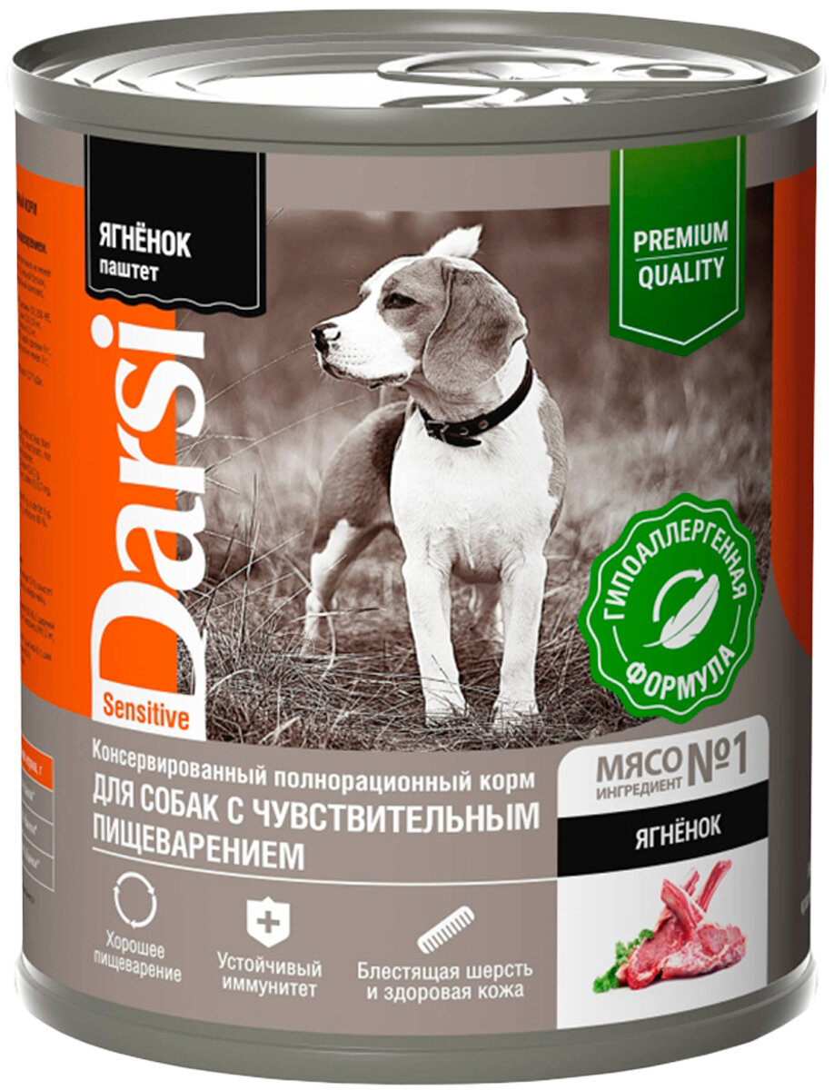 Купить Darsi Консервы "Ягненок" для собак с чувствительным пищеварением, паштет 0.85 кг