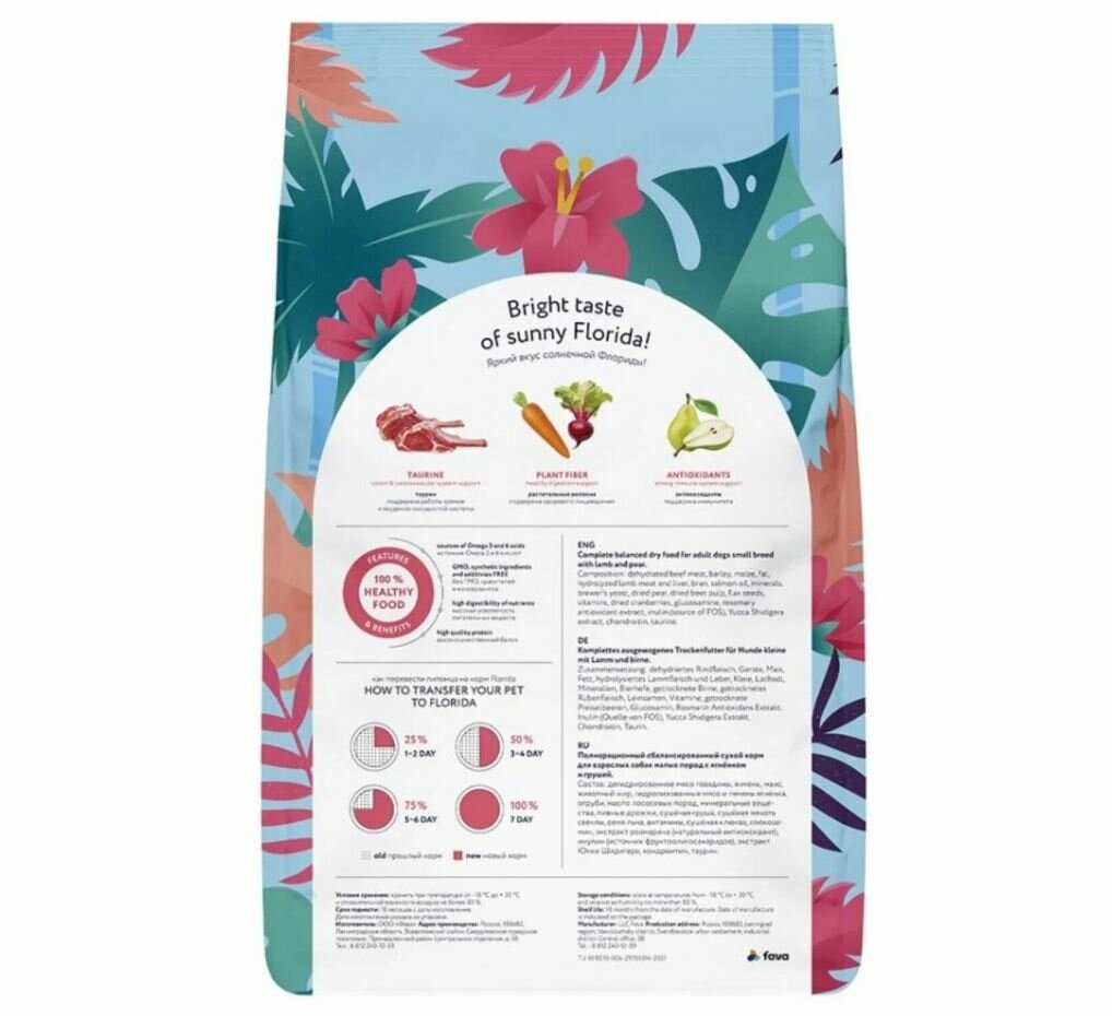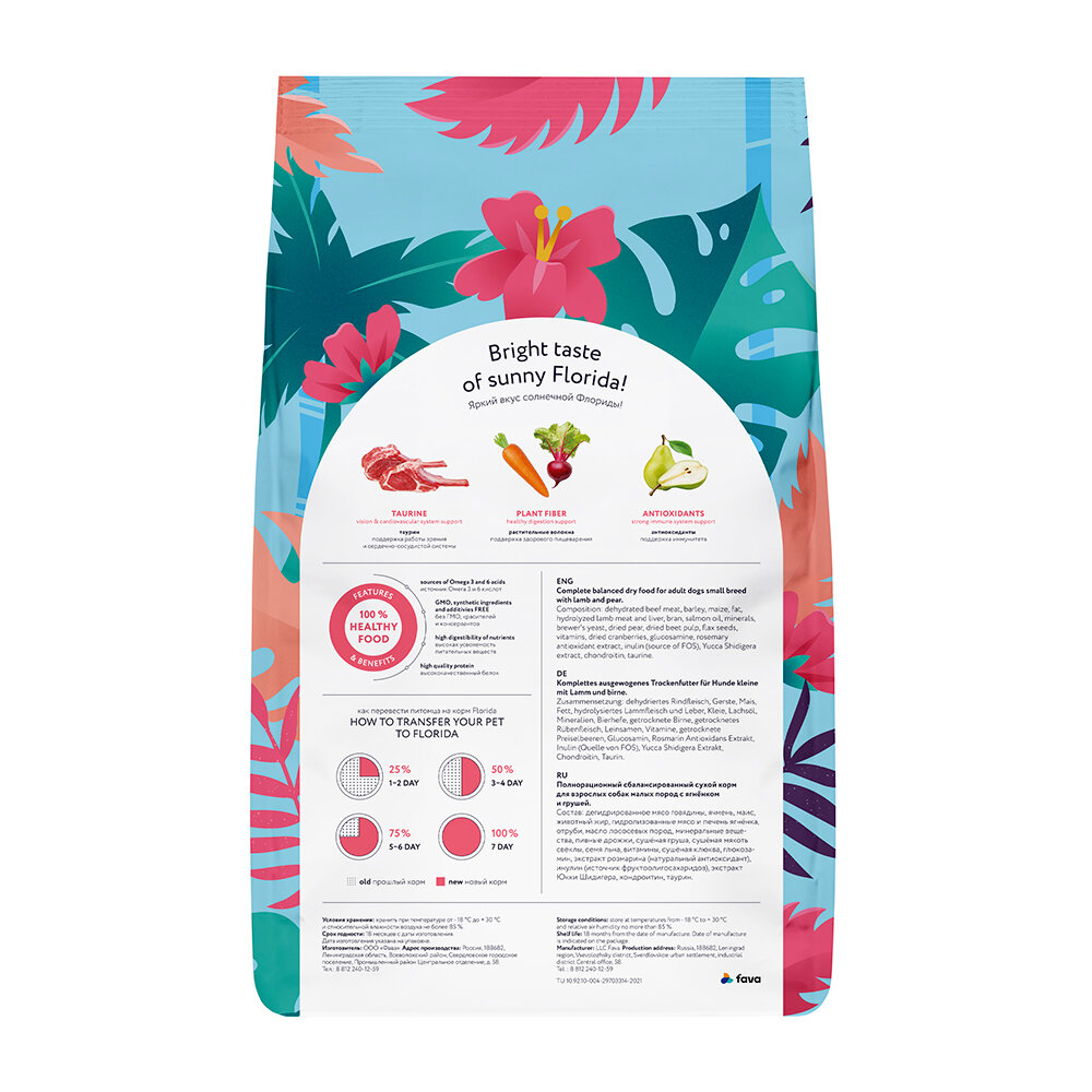 | Дополнительная информация | Florida Lamb and Pear - сухой корм супер-премиум класса с ягнёнком и грушей для собак малых пород. Сбалансированное полнорационное питание, способствующее правильному развитию собаки. |