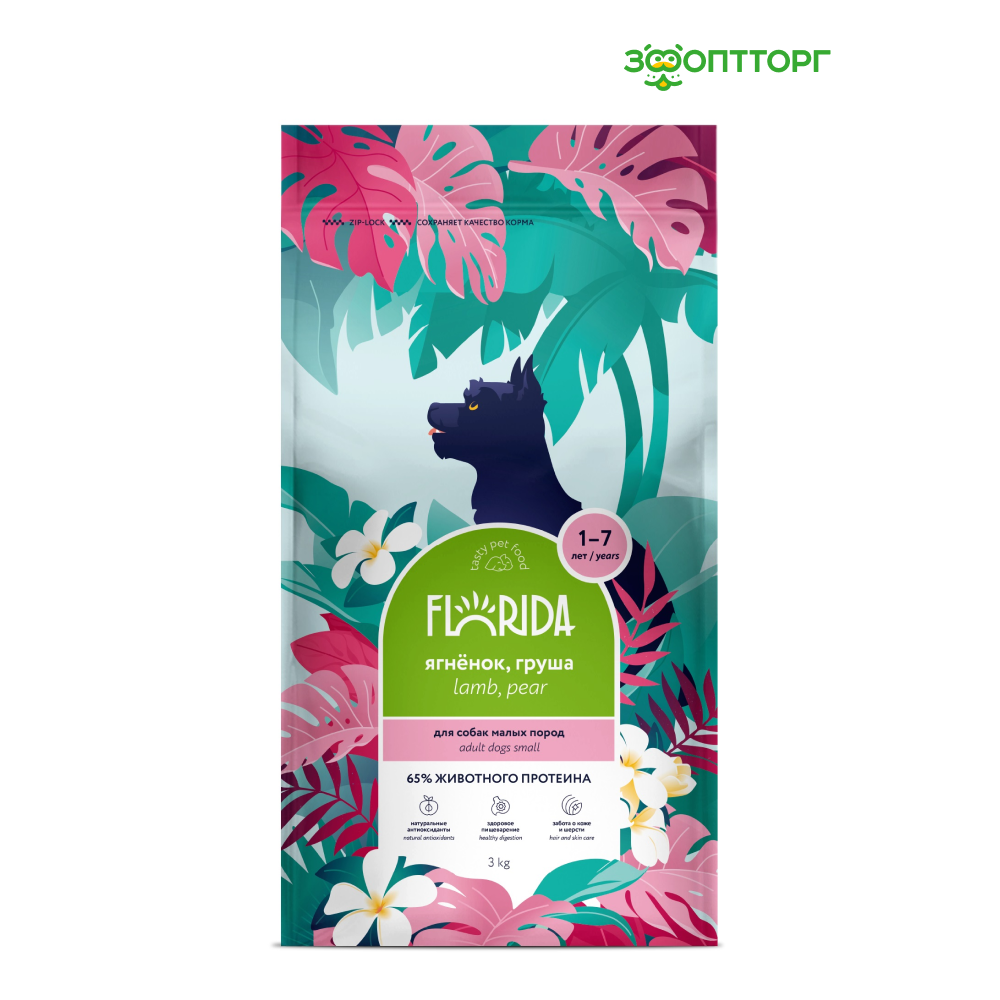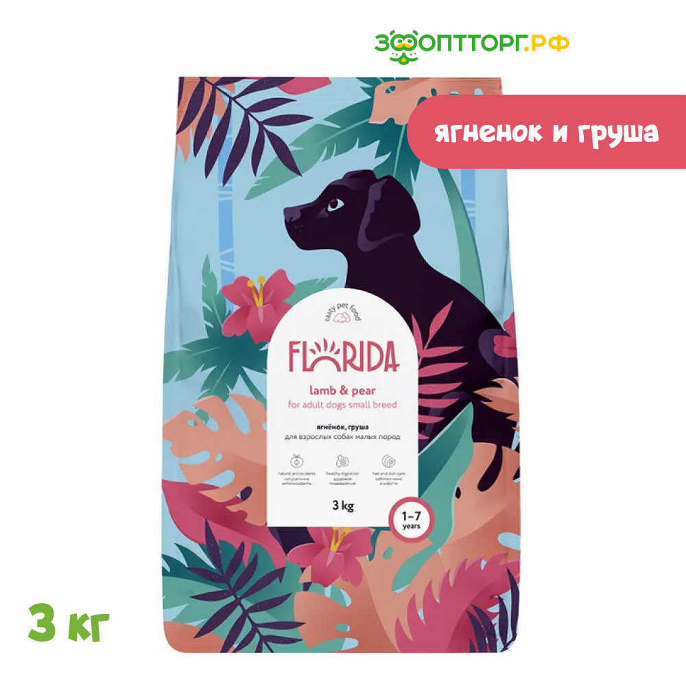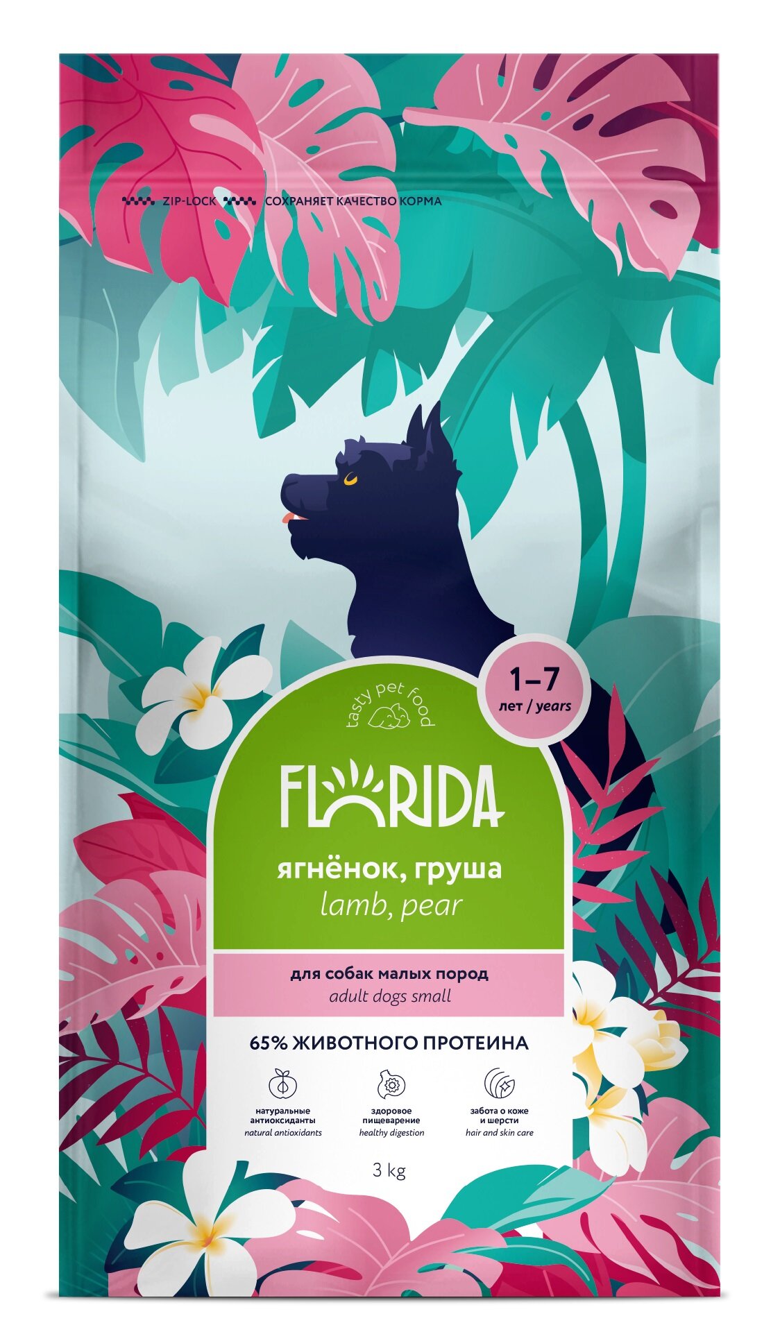Florida корм для собак малых пород, с ягненком и грушей 3 кг