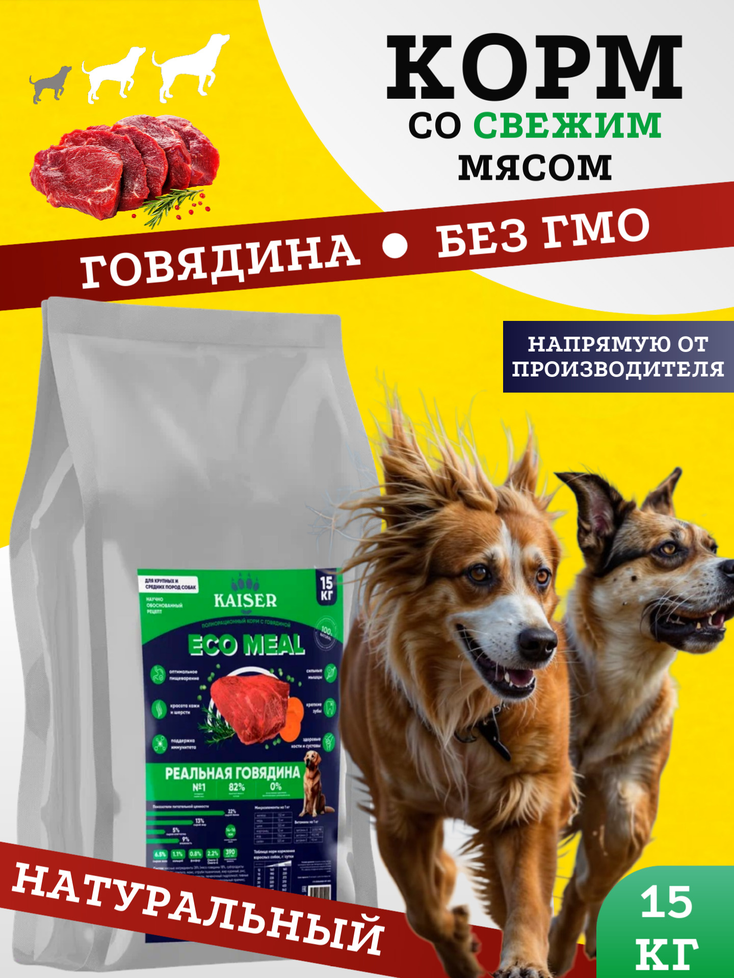 Полнорационный сухой корм для собак средних и крупных пород с говядиной (натуральный состав) ECO meal, 15 кг интересное: