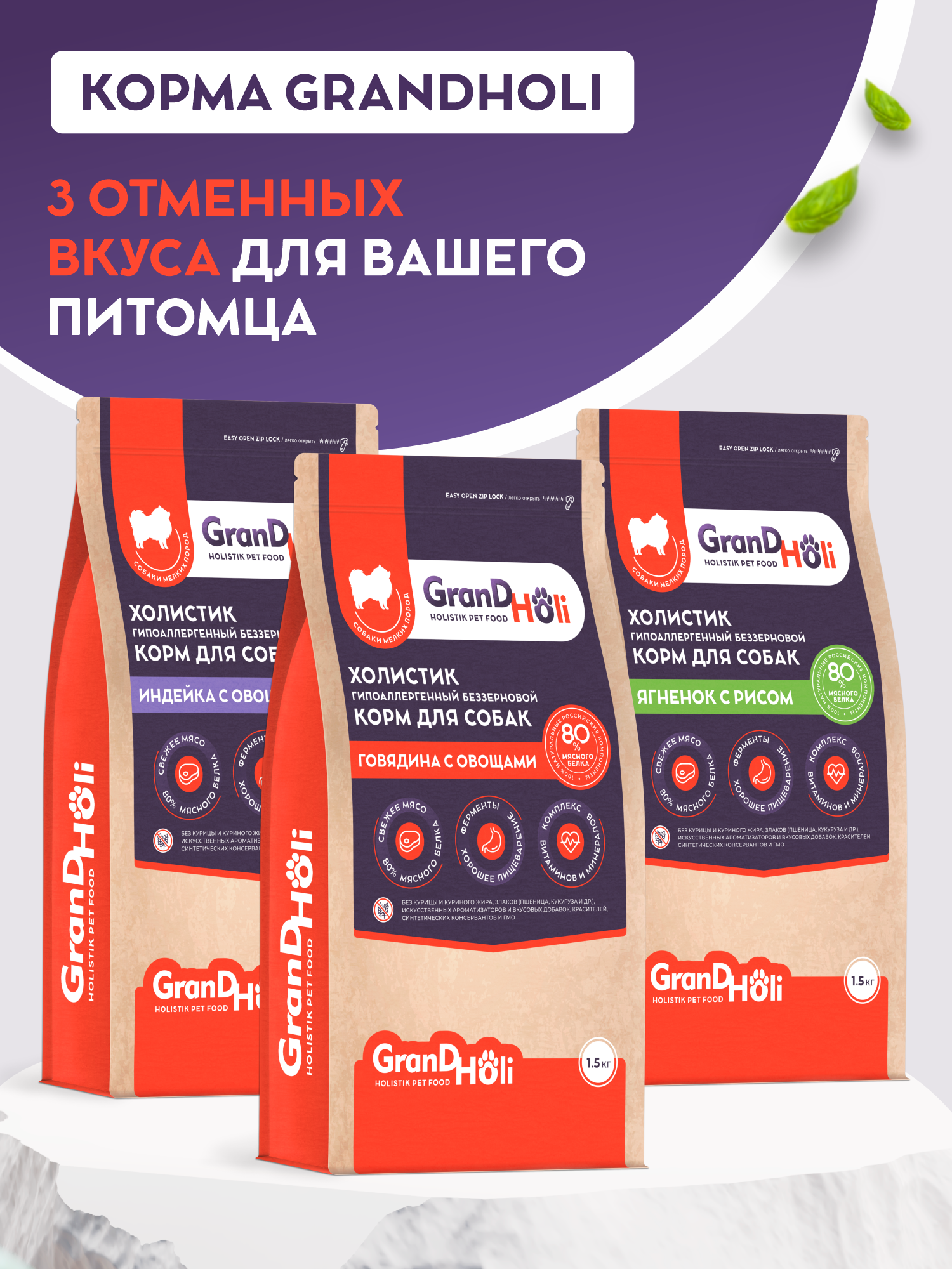 Сухой корм для собак породы шпиц GRANDHOLI холистик "Говядина с ягодами" 1,5кг