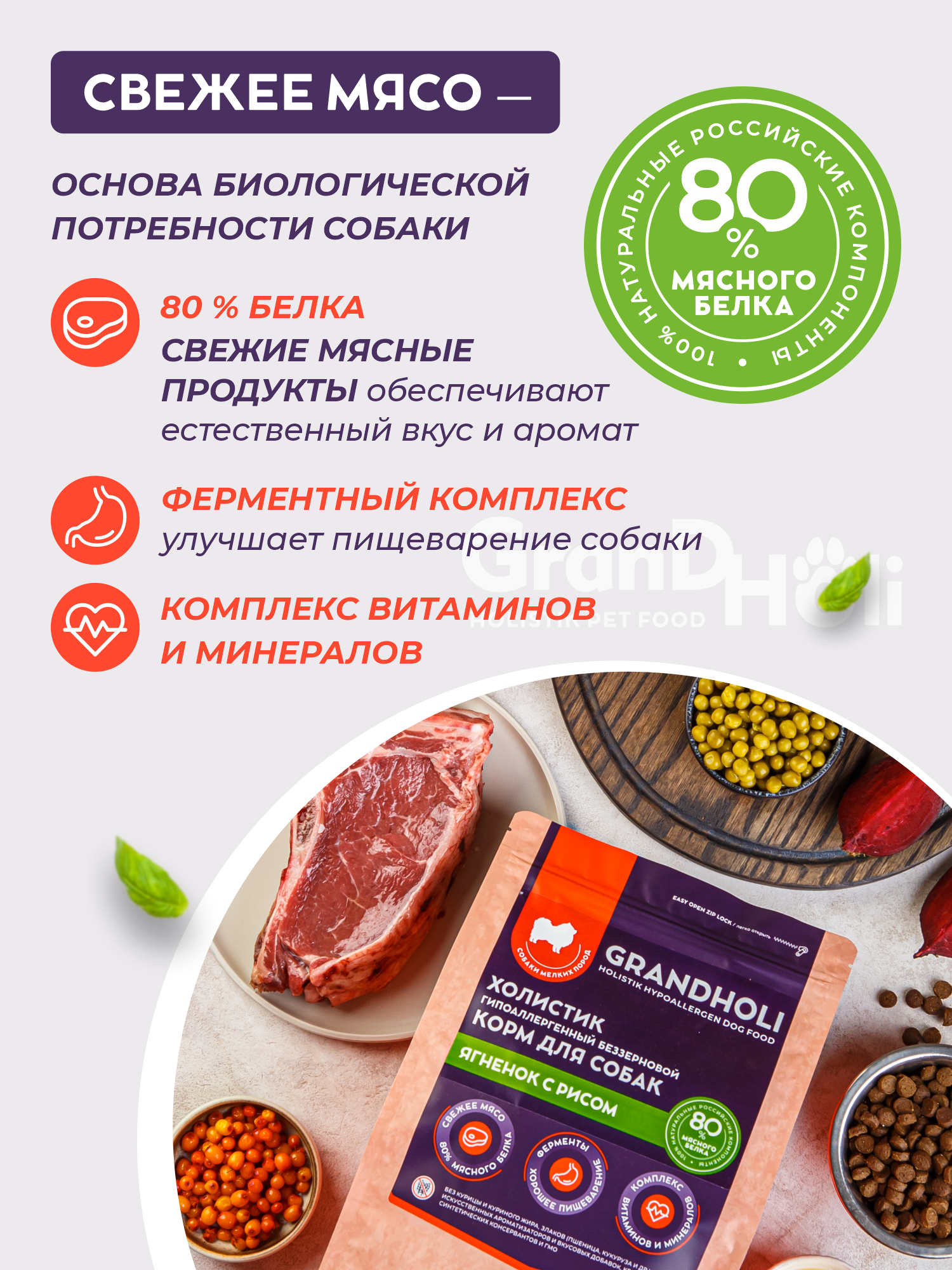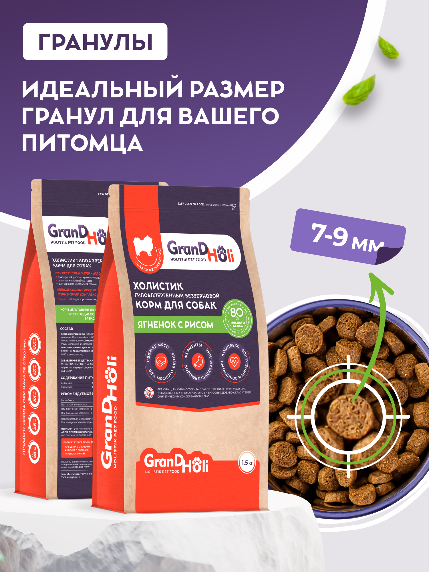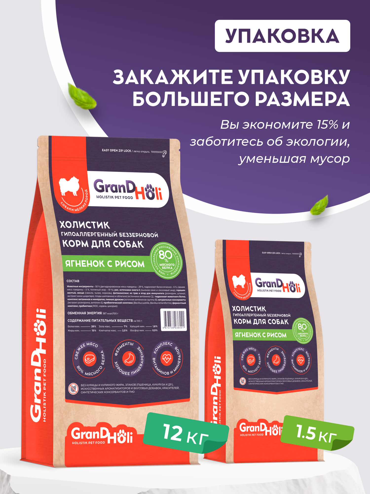 Купить Сухой корм для собак мелких пород GRANDHOLI холистик "Ягнёнок с рисом" 1,5кг
