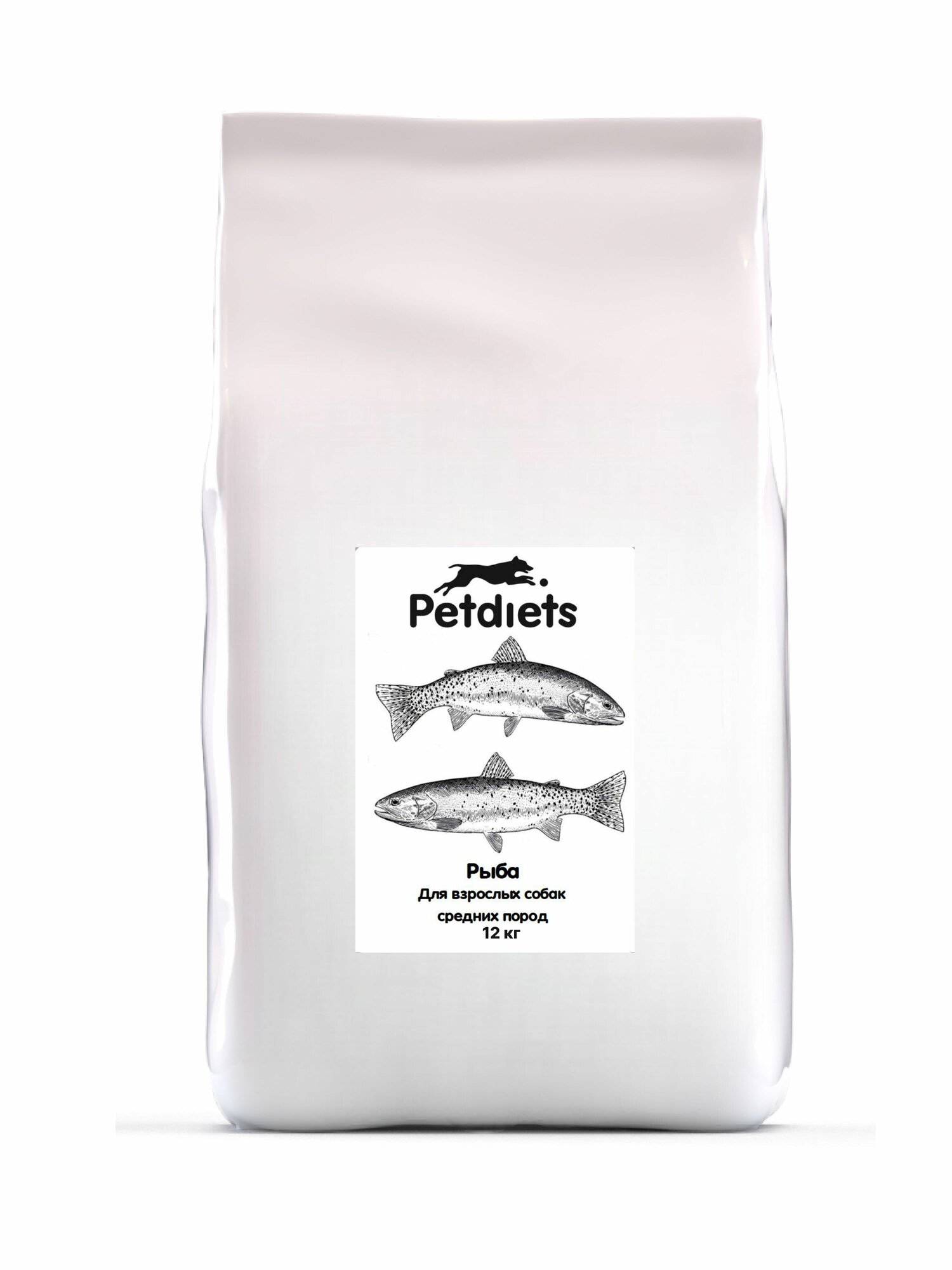 Купить Корм сухой "Petdiets" (Петдаетс) для собак средних пород, рыба, 12кг