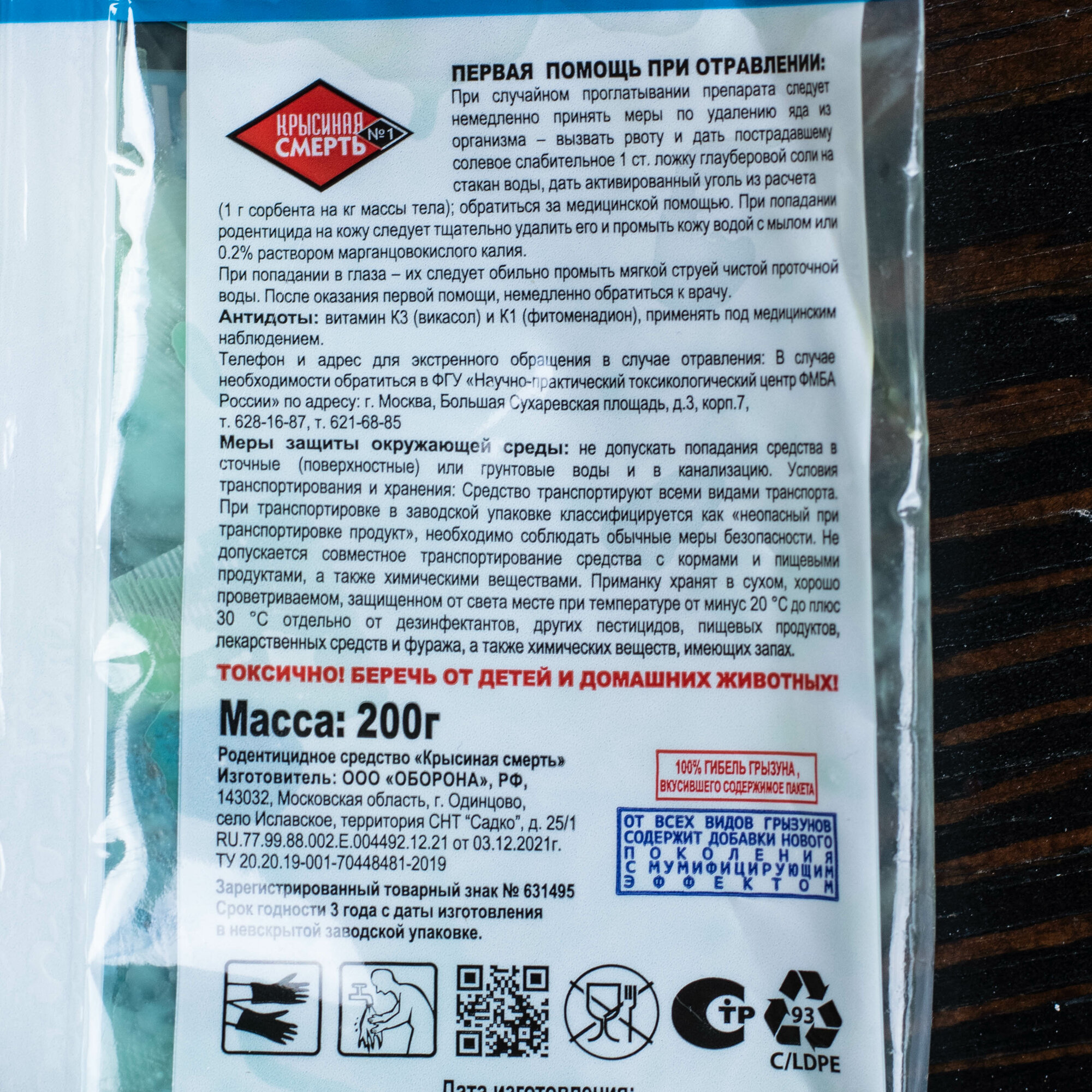 Крысиная смерть №1 отрава - приманка от крыс и мышей, 3 упаковки по 200гр интересное: