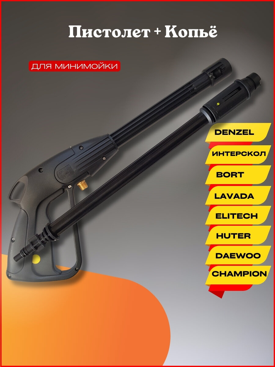 Моечный комплект (пистолет и копье) для Denzel, Интерскол, Bort, Lavada, Huter, Daewoo, Champion, Elitech интересное: