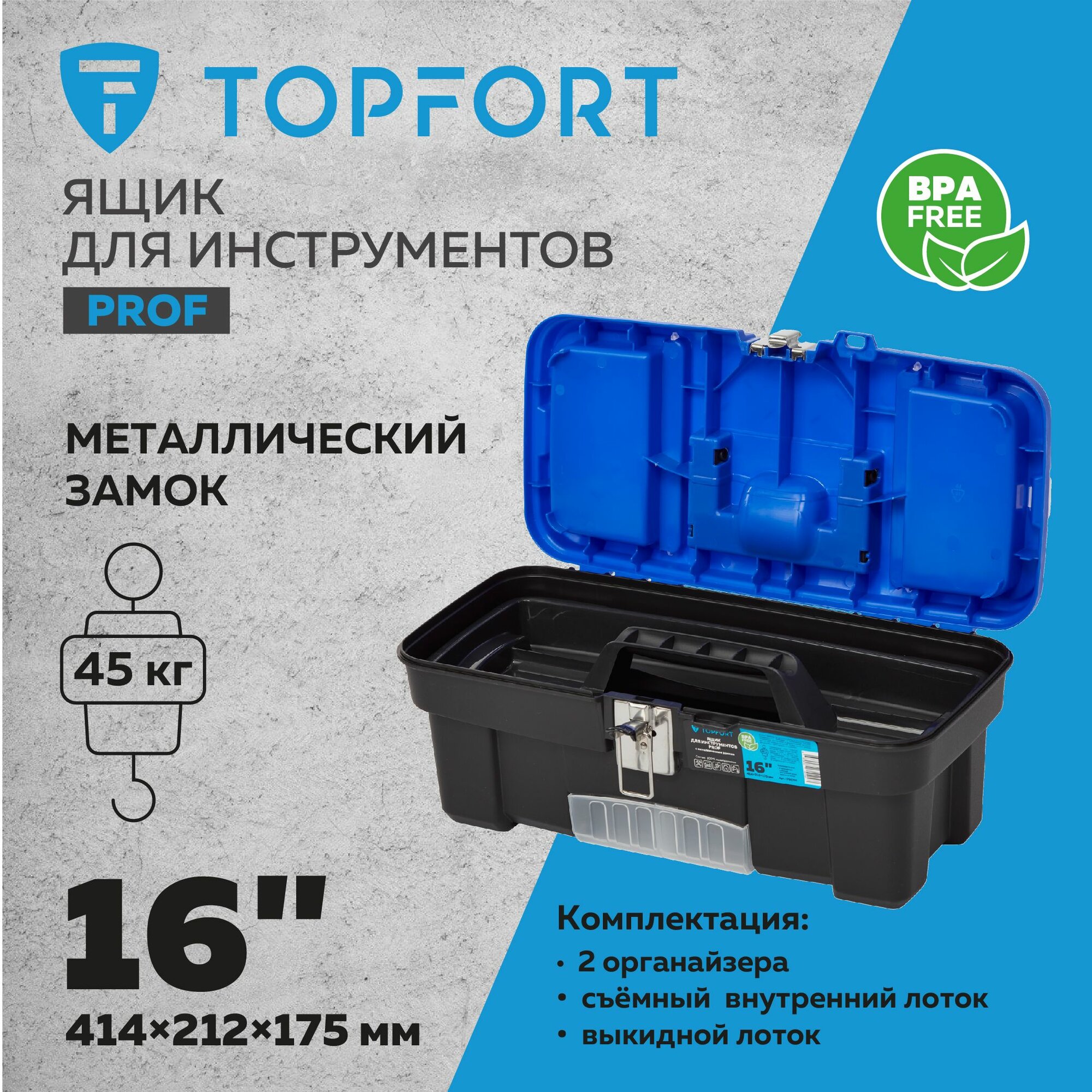 Ящик для инструментов TOPFORT PROF 414x212x175 мм интересное: