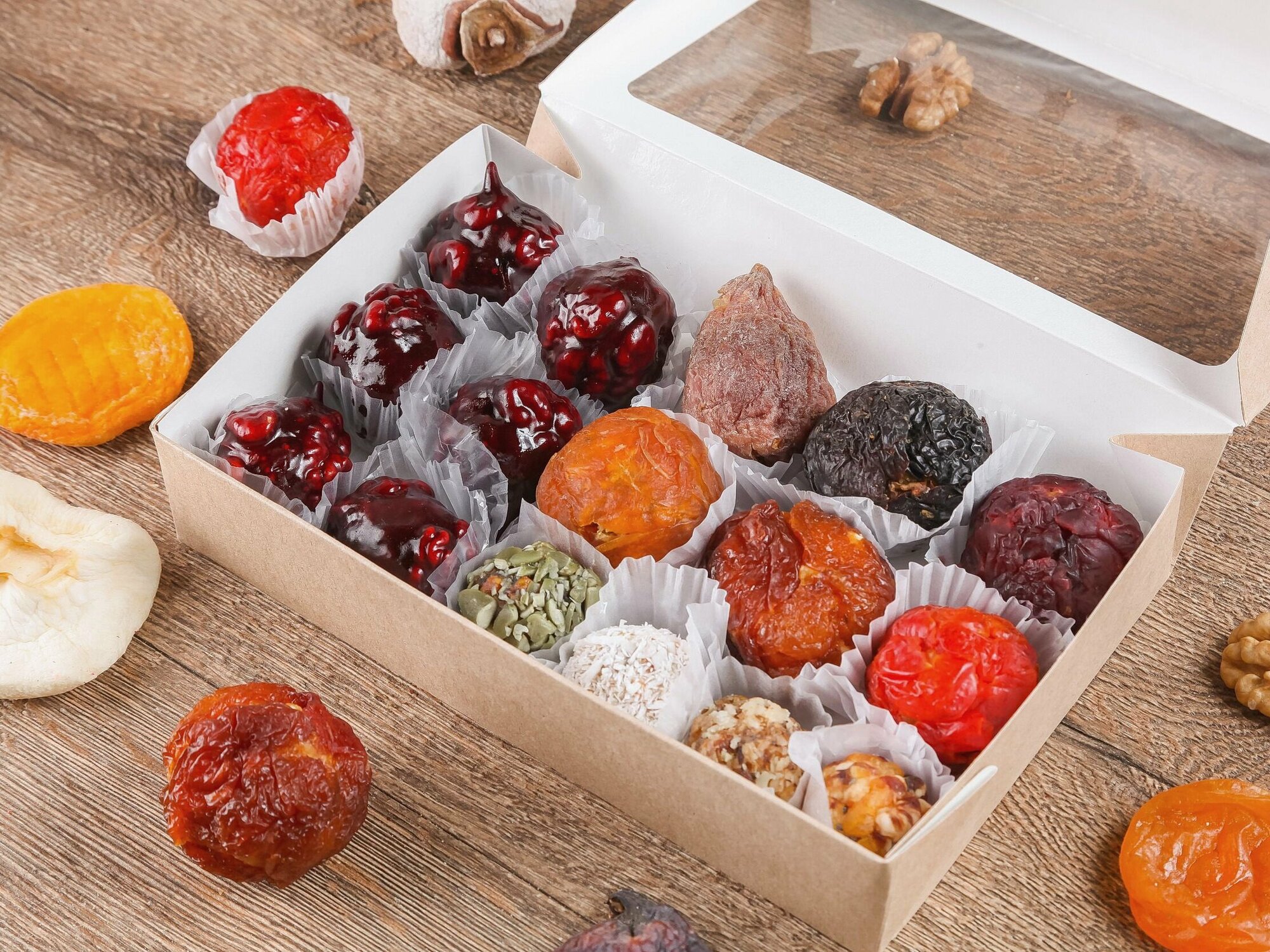 | Состав | конфеты - абрикос, яблоко, персик, чернослив, дыня, груша, красная слива, малина, стружка кокоса, семена чиа, семена тыквы, натуральный мед, миндаль, кешью, грецкий орех, возможны следы арахиса.; фручелла - груша, абрикос, персик, инжир, черешня, орех грецкий, мед, сок (пюре) красной сливы, мука, корица, гвоздика, ваниль; алани мини - со сливой, черешней, абрикосом (абрикос, яблоко, персик, грецкий орех, мед, корица, гвоздика). (Осторожно, могут попадаться фрагменты скорлупы). |