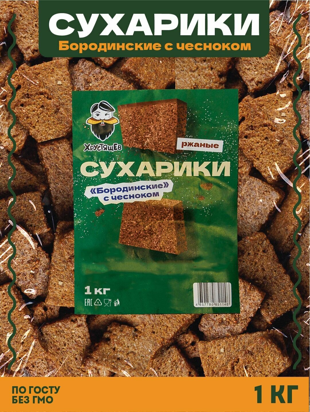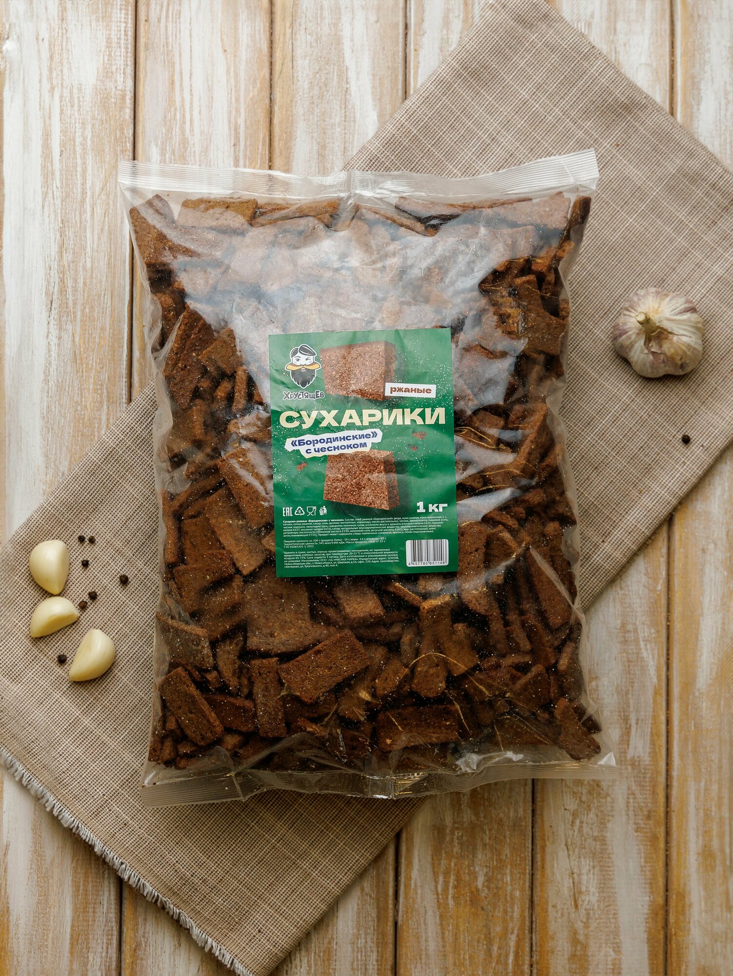 Сухарики Бородинские ржаные с чесноком 1 кг / Сухари ржаные с чесноком 1000 гр / Гренки к супу/ интересное: