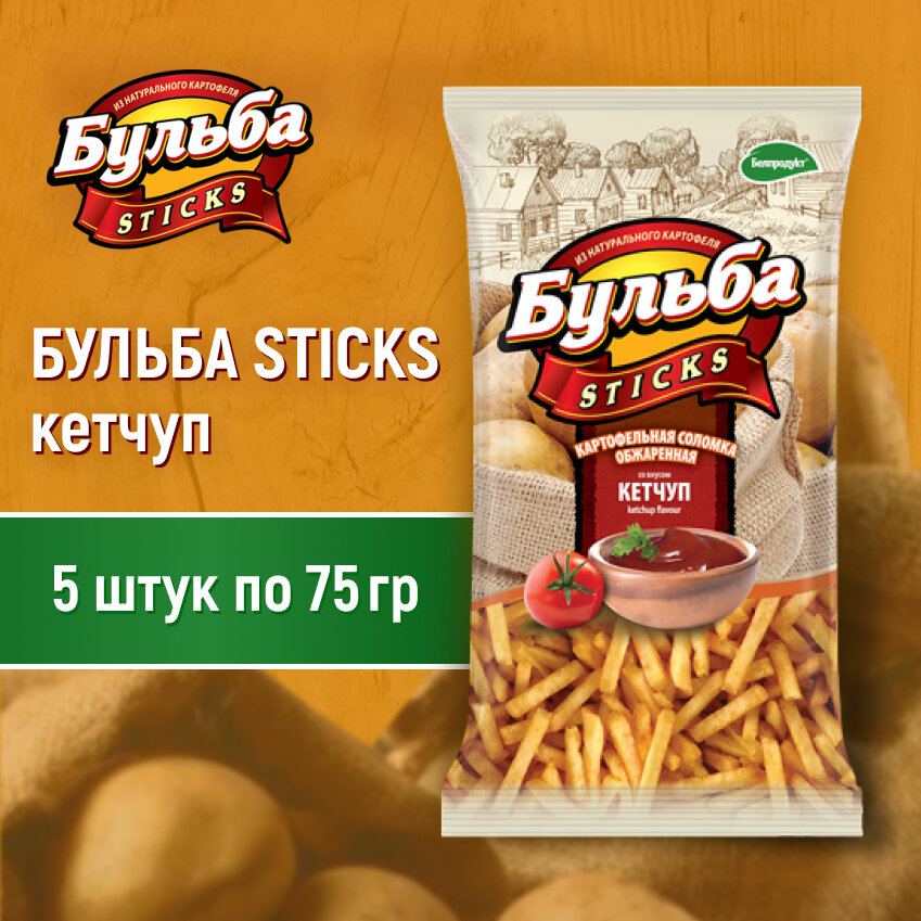 Соломка из цельного картофеля БУЛЬБА STICKS со вкусом кетчупа 75гр (5шт)