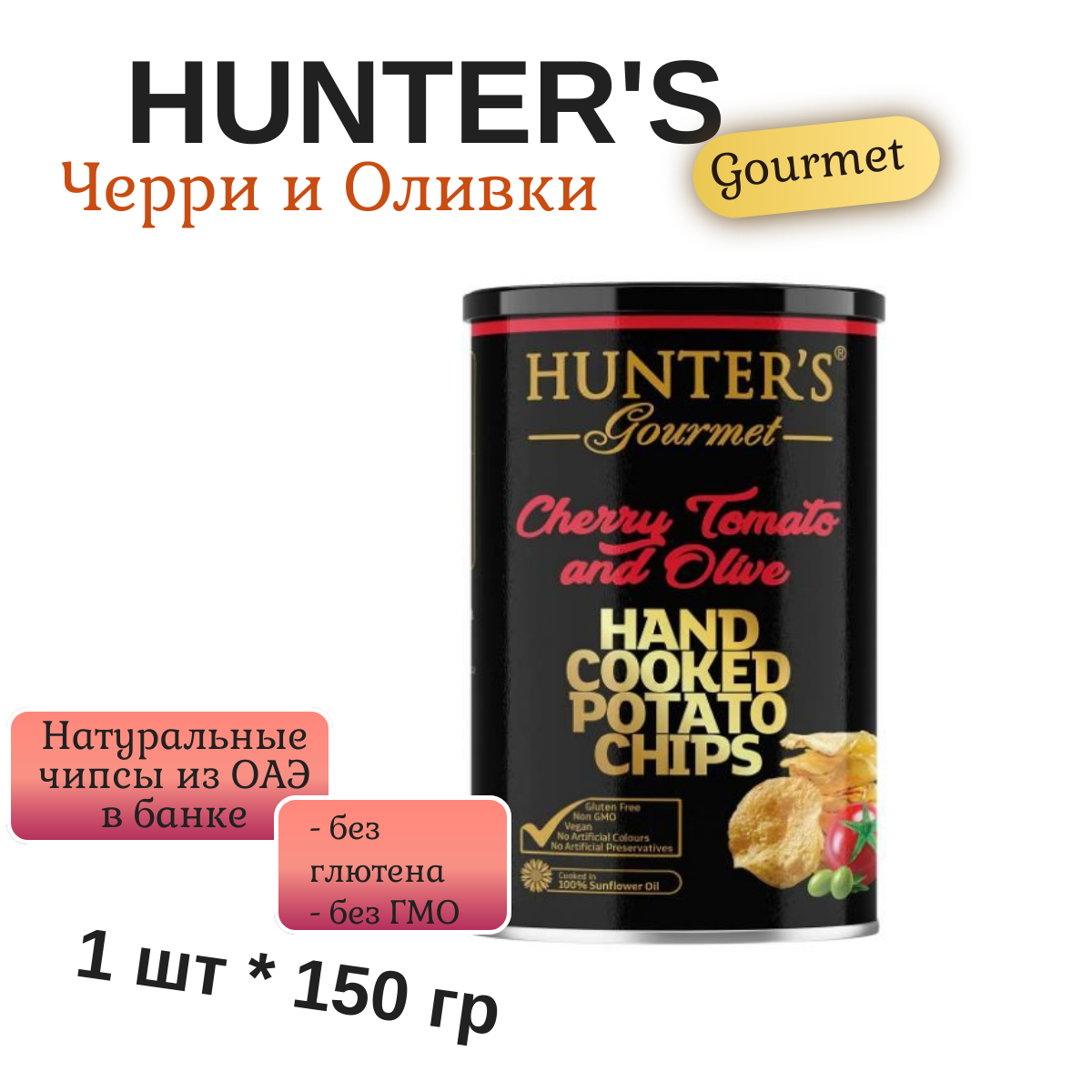 Купить Чипсы картофельные Hunter s Gourmet (Помидор Черри и Олив) 150г, банка, 1шт