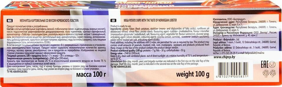 СохранитьЧипсы картофельные Бульба Мегачипсы со вкусом норвежского лобстера 100г интересное: