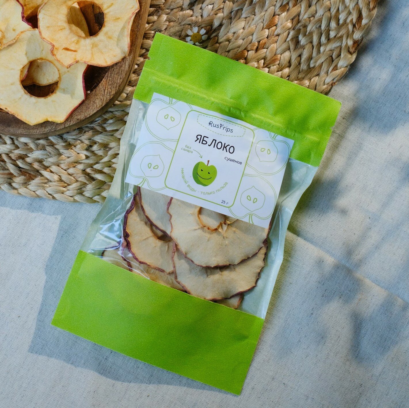 Яблочные чипсы, яблоко сушеное кольцами, полезные снеки RusFrips без сахара 25 грамм интересное: