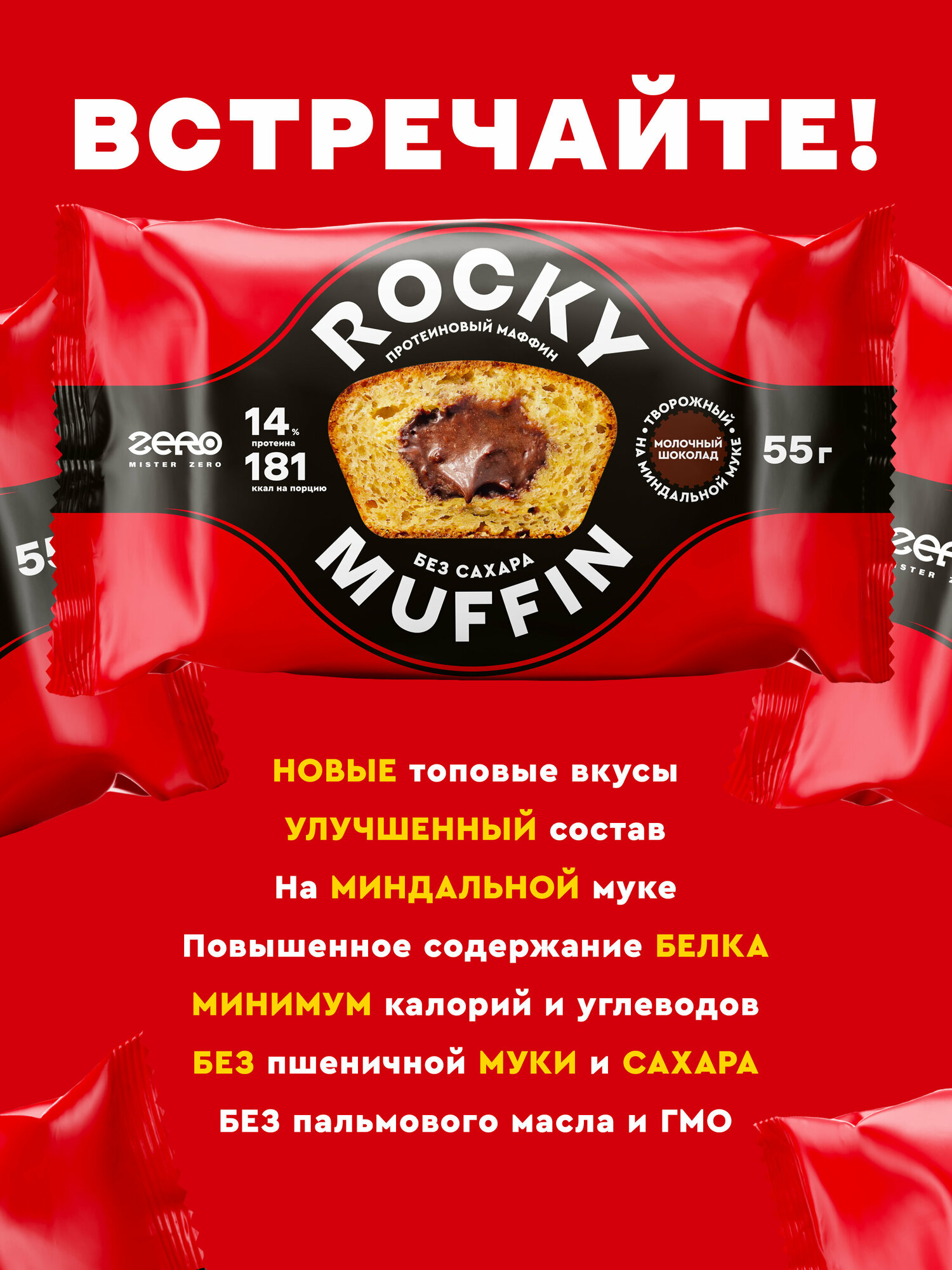 Маффины протеиновые без сахара ROCKY MUFFIN "Творожный с молочным шоколадом" 8шт по 55гр интересное: