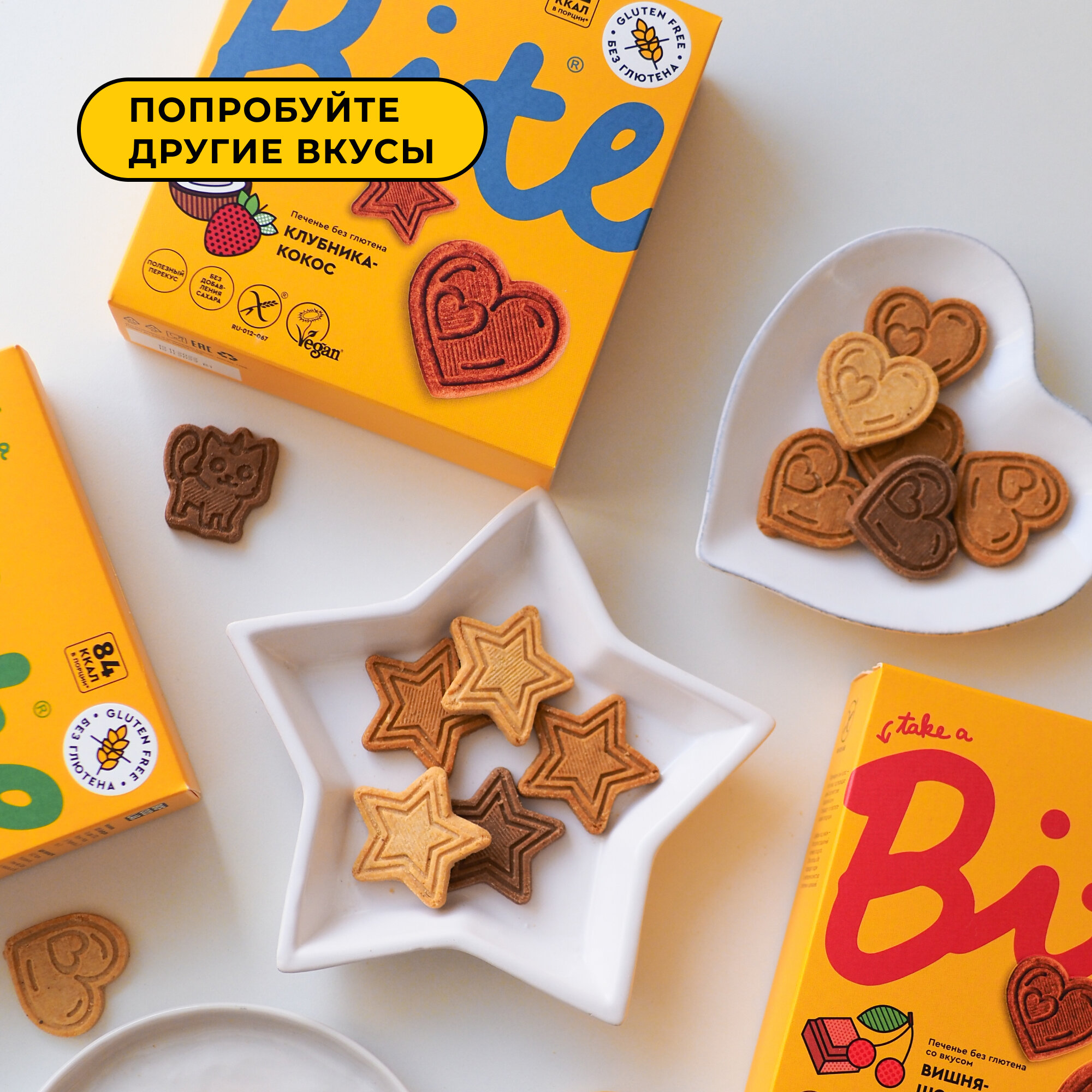 Печенье без сахара Take a Bite, ассорти из 3 вкусов, без глютена, 6 шт по 115 гр интересное:
