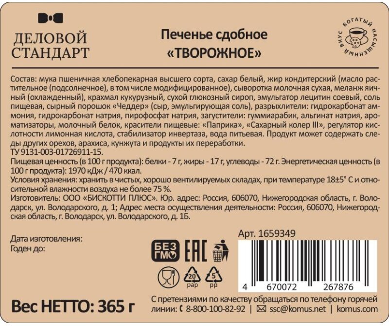 Ниже Вы можете прочитать отзывы на Печенье сдобное Деловой Стандарт Творожное, 365г, ознакомится с подробными характеристиками, посмотреть интересные обзоры и фотографии на Печенье сдобное Деловой Стандарт Творожное, 365г.