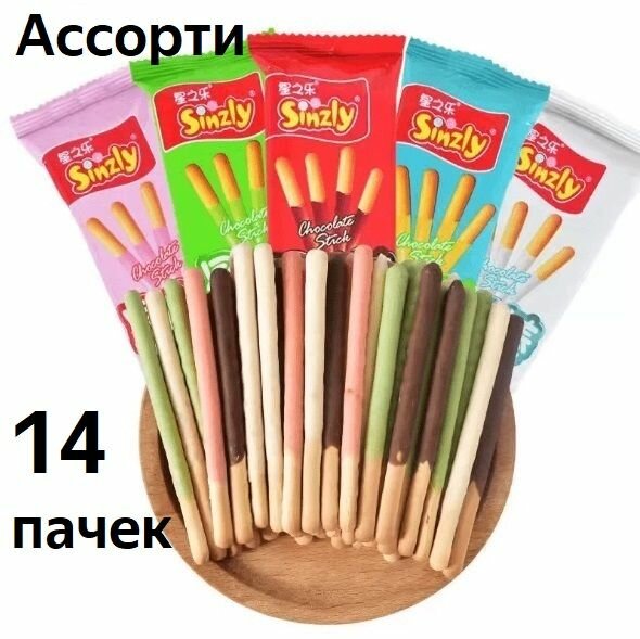 Купить Sinzly печенье бисквитные палочки в шоколадной глазури, ассорти 14 пачек (шоколадные хрустящие палочки Поки Pocky)
