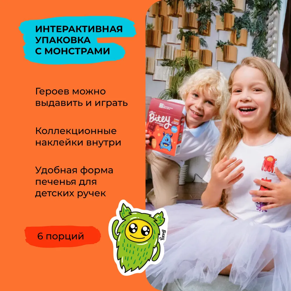 Печенье детское без сахара шоколадное Take a Bitey / Bite х Чебурашка, Апельсин, без глютена, 4 шт по 125 гр