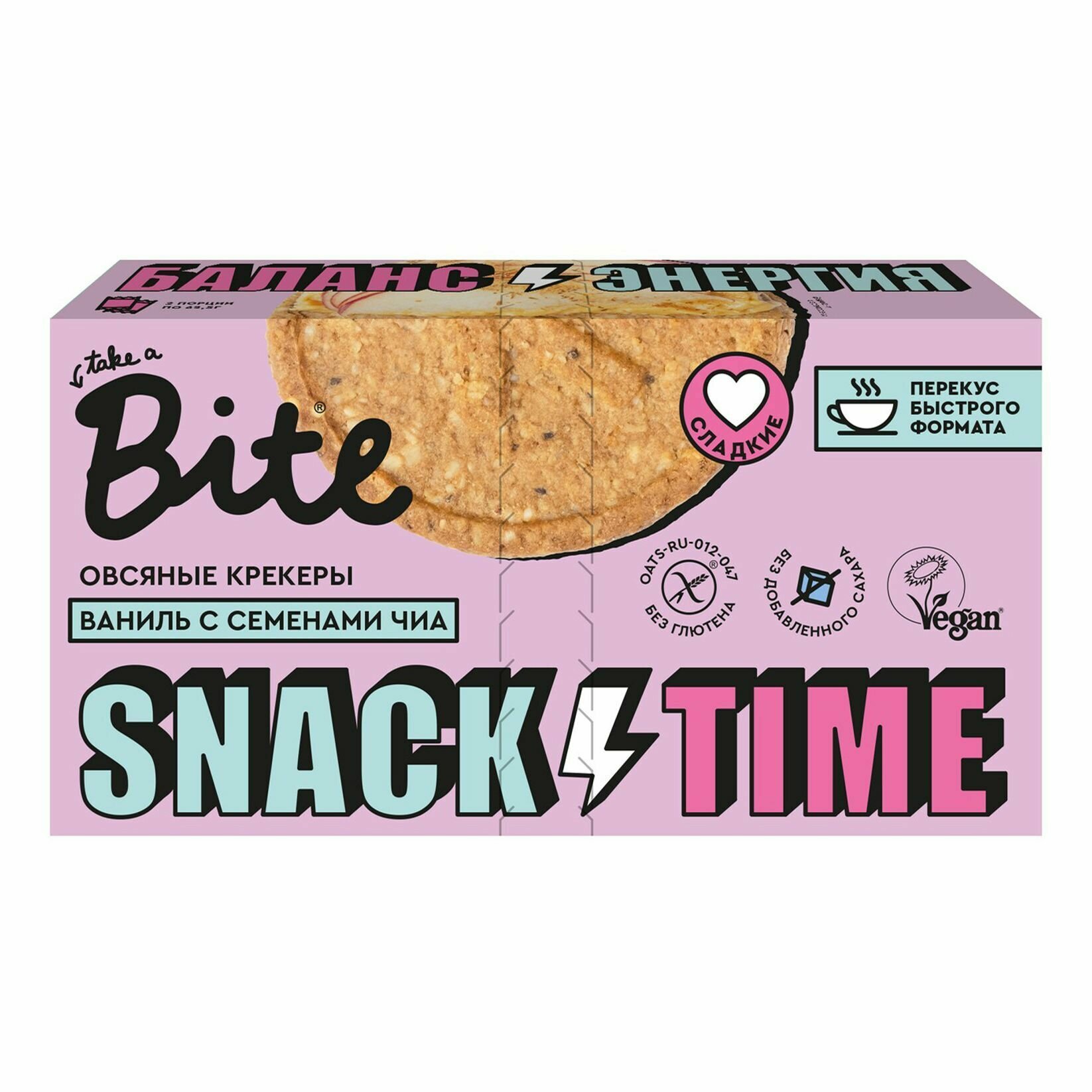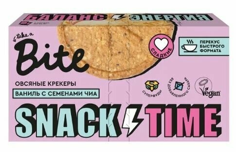 Купить Крекеры овсяные TAKE A BITE со вкусом ванили и семенами чиа, сладкие, Арт. БФ-00001319, 125г