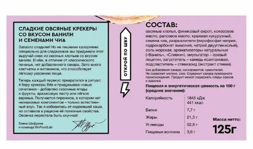 Крекеры овсяные, сладкие, со вкусом ванили и семенами чиа, 125 грамм, Bite