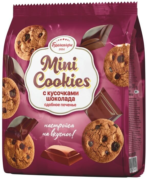Купить Печенье сдобное "Mini Cookies" с кусочками шоколада из ванильного теста, 200 грамм, Брянконфи, Изготовлено по ГОСТ 24901-2014, Артикул - 3045076