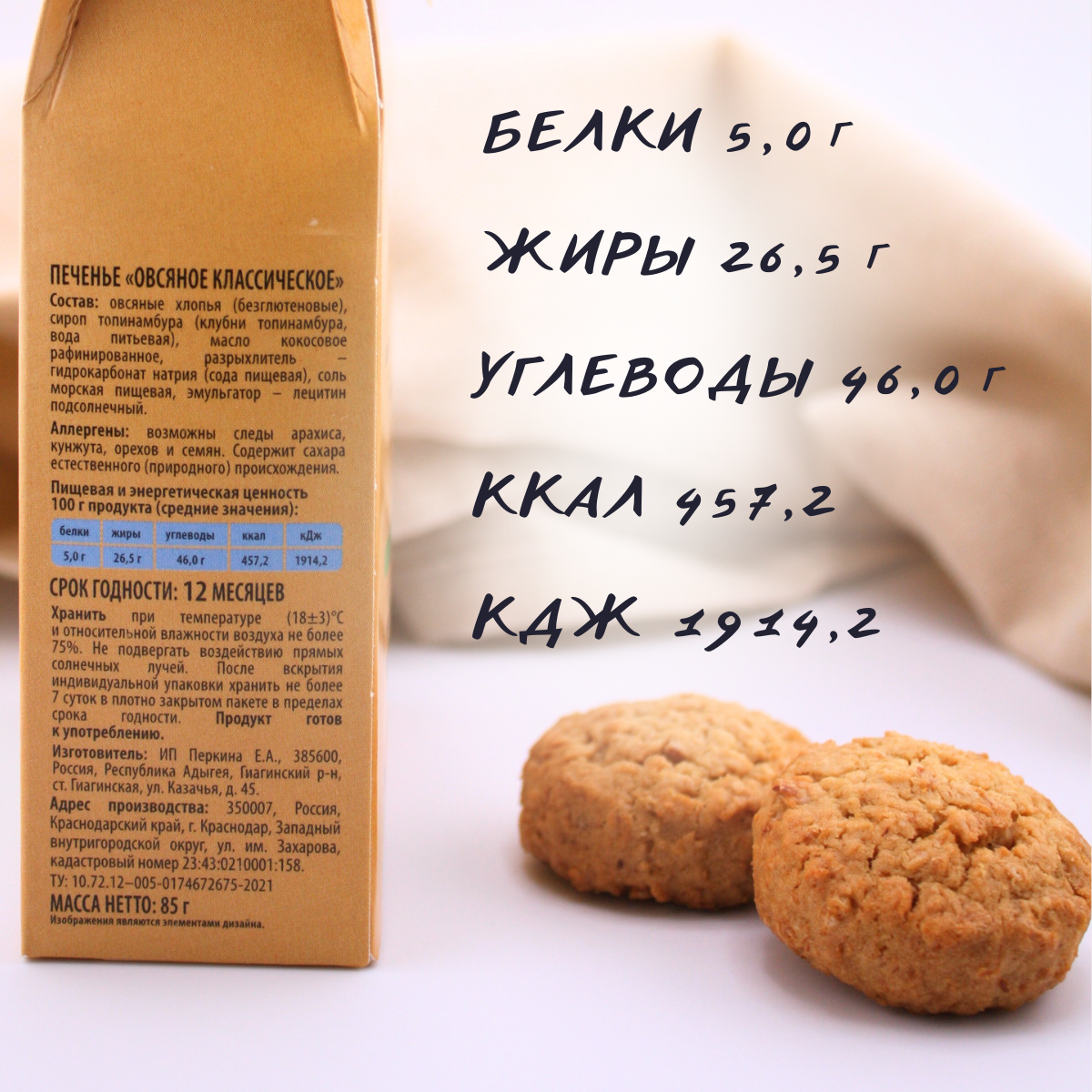 Печенье овсяное безглютеновое "Классическое" без сахара Nutvill, 85 гр (2 шт. в наборе)