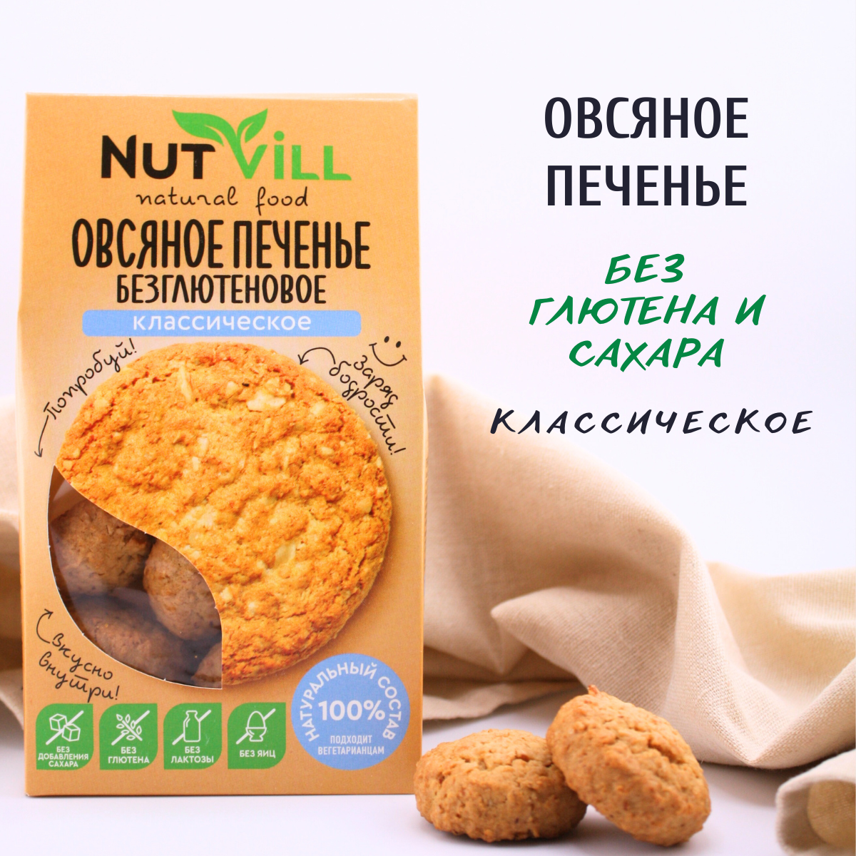 NutVill Овсяное печенье Классическое без сахара и без глютена