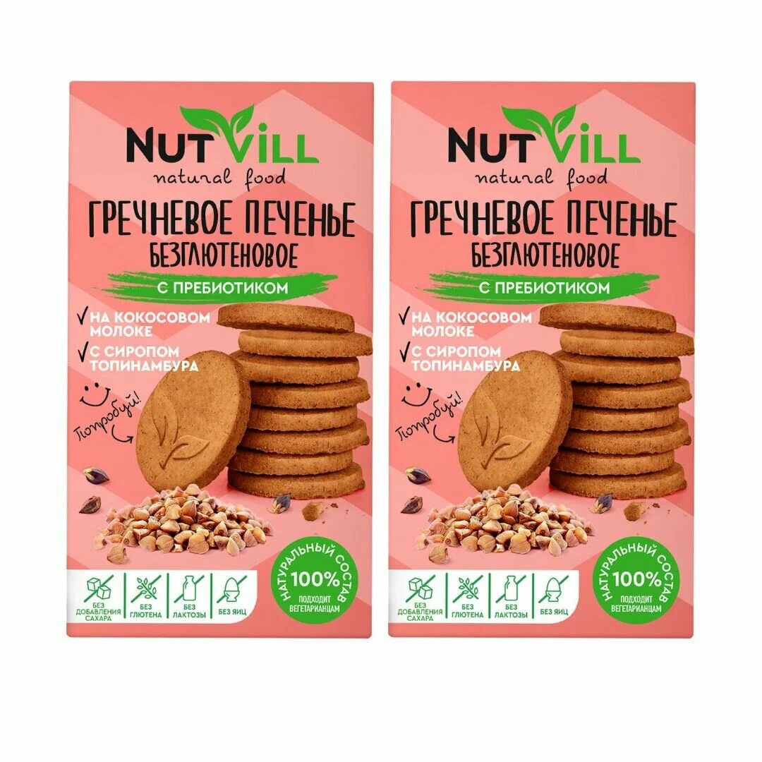 Купить Печенье "Гречневое" с пребиотиками без сахара и без глютена Nutvill, 85 гр (2 шт. в наборе)