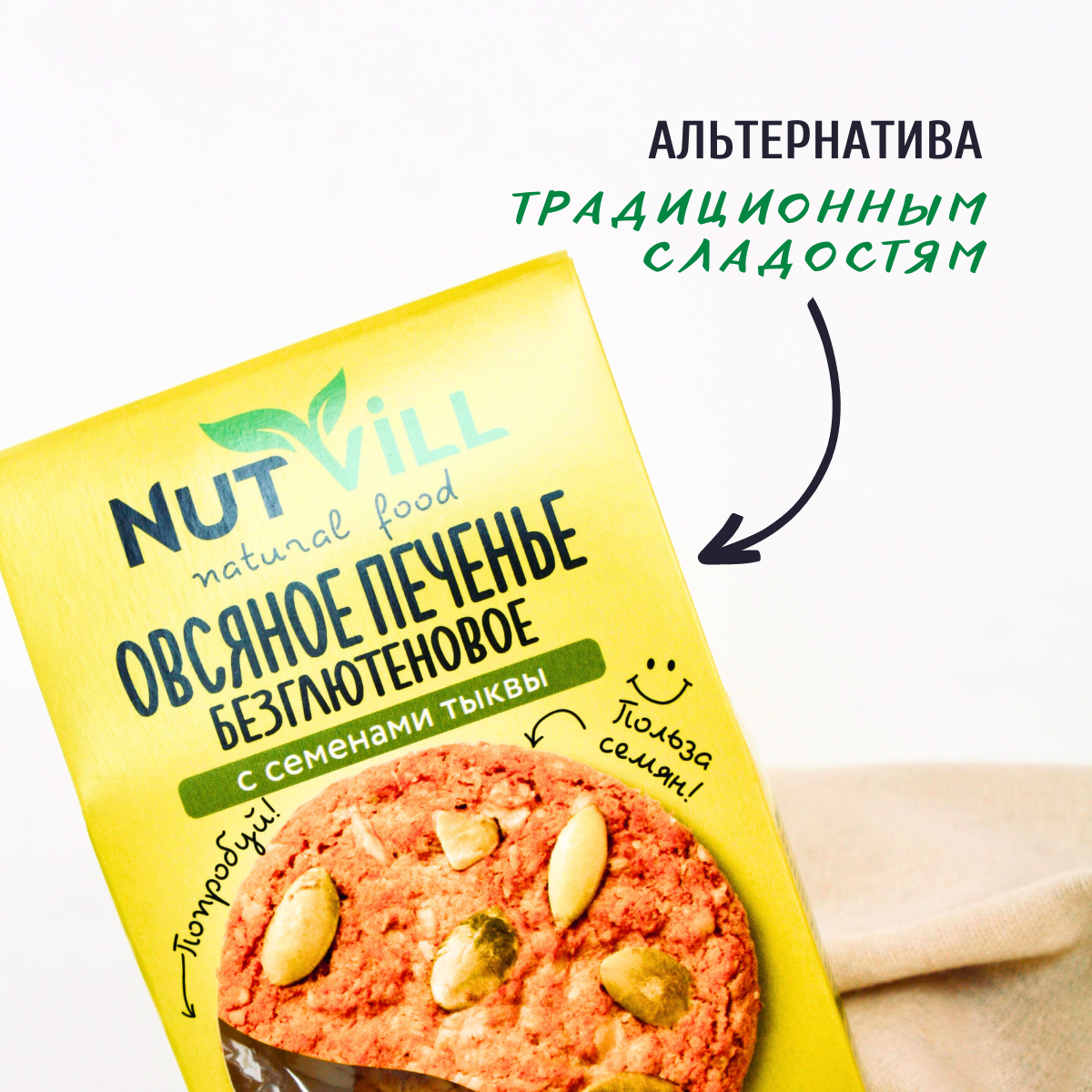 NutVill Печенье овсяное С семенами тыквы без сахара без глютена, 3 шт.
