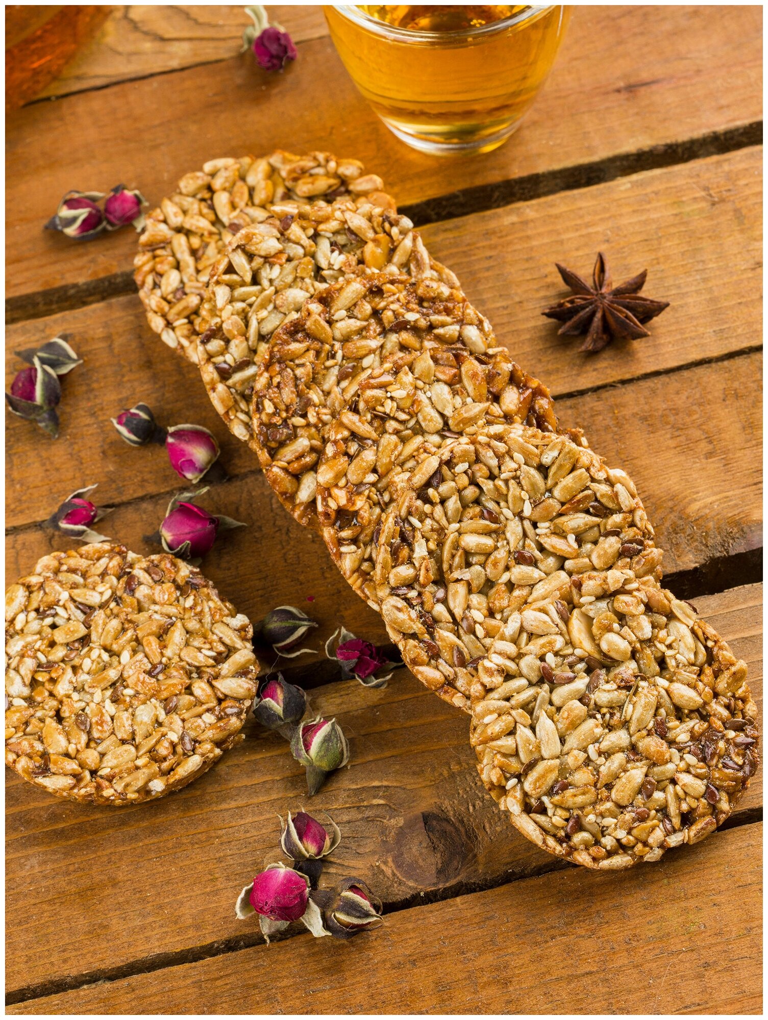 | Состав | семечки подсолнечника, патока карамельная, ядро арахиса, семечки кунжута, семечки льна, мука пшеничная хлебопекарная в/с, сахар-песок, масло подсолнечника, кислота лимонная |