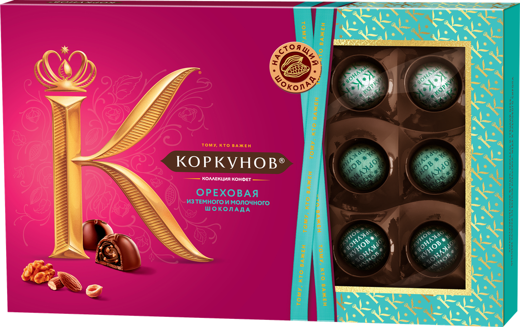 Коркунов шоколадные конфеты Ореховая коллекция с фундуком, грецким орехом и миндалем, 165г интересное: