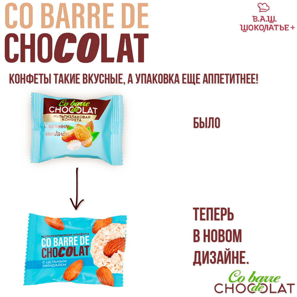 Конфеты Шоколатье Co barre de CHOCOLAT мультизлаковые с цельным миндалём 1000гр /Вкус, знакомый с детства.