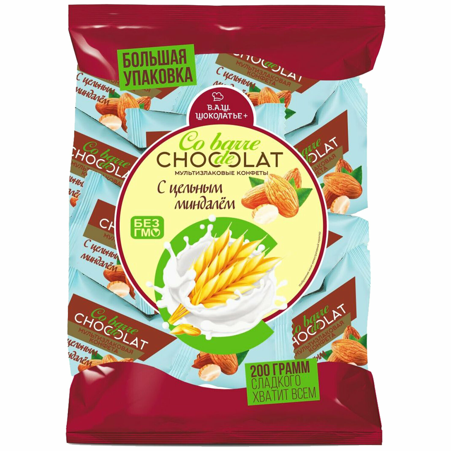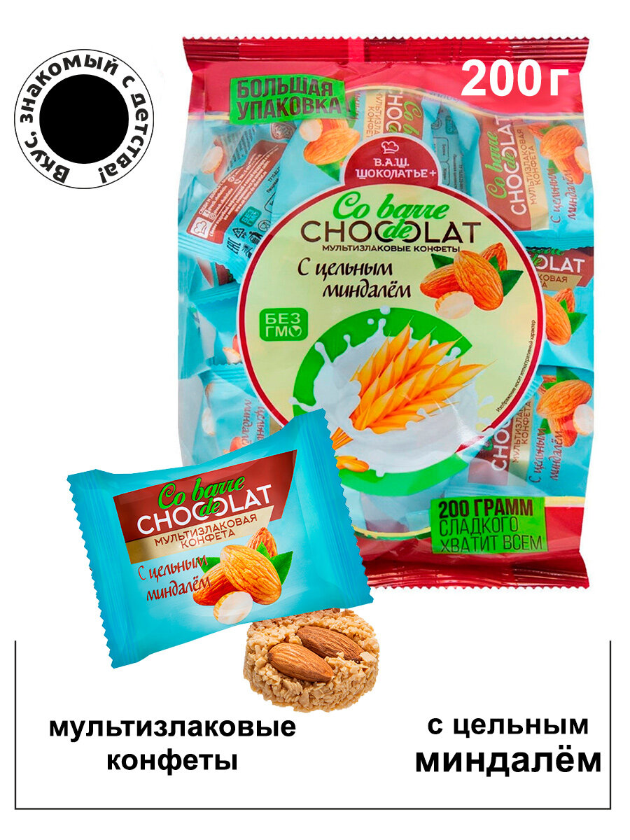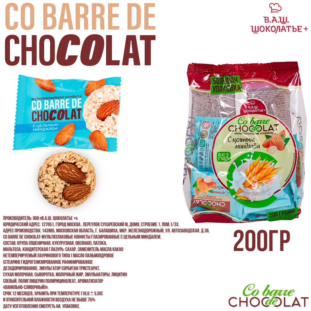 Конфеты мультизлаковые с цельным миндалем 200г/Co barre de CHOCOLAT/ Вкус, знакомый с детства!