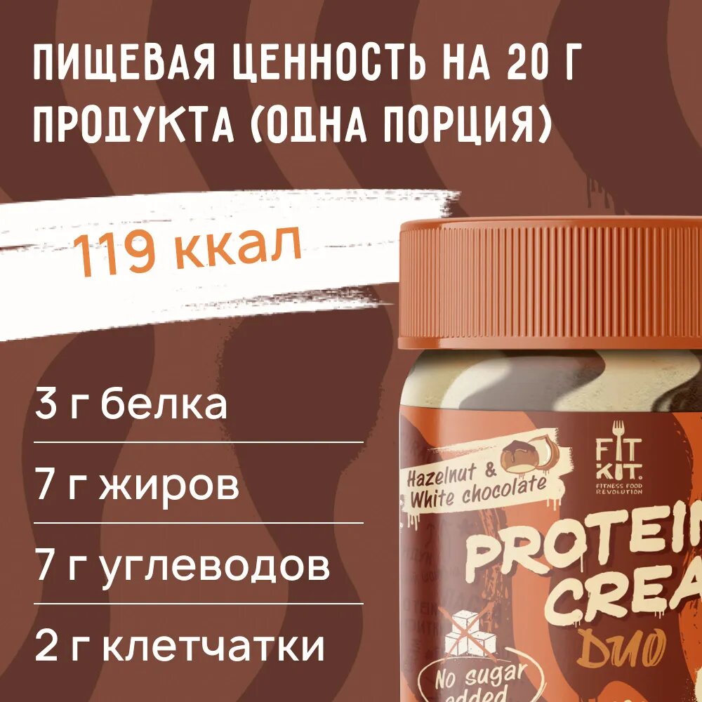 Протеиновая шоколадная паста "PROTEIN CREAM DUO" с фундуком и белым шоколадом 530 грамм , FIT KIT , фит кит