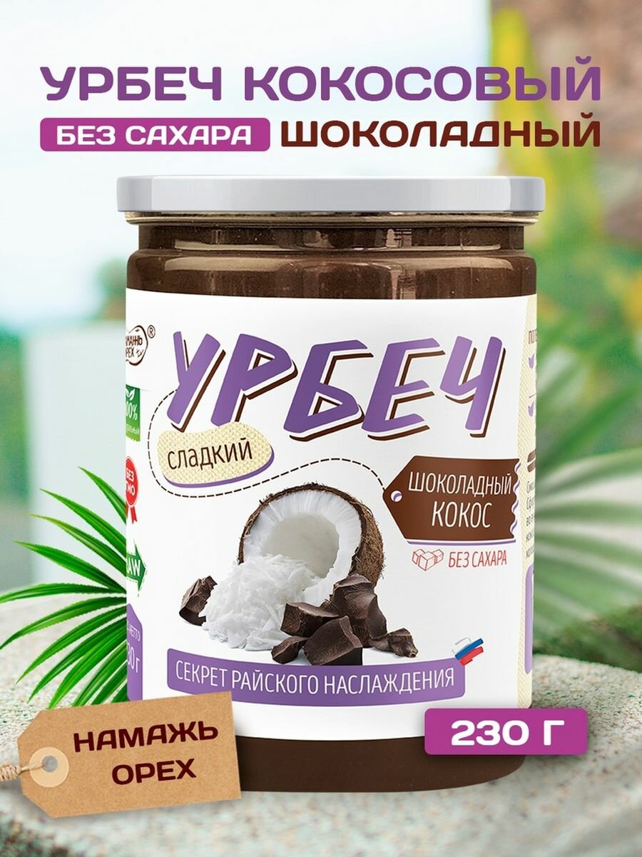 Урбеч кокосовый с какао сладкий 230 грам без сахара Намажь орех интересное: