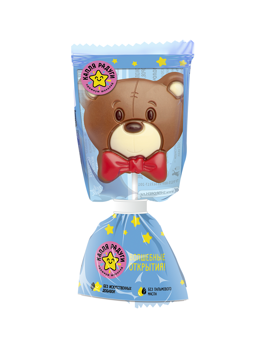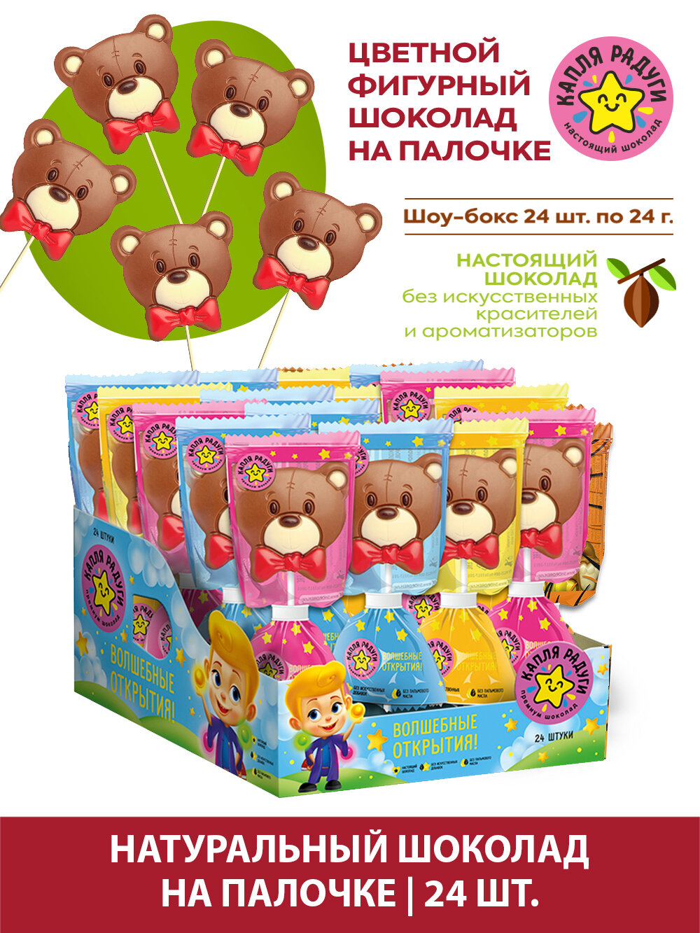 Купить Шоколад молочный фигурный Капля радуги "Мишка" на палочке детский/ настоящий шоколад/ шоколад на палочке/ шоколадная конфета/ сладкий подарок 24 г * 24 шт. (шоу-бокс)
