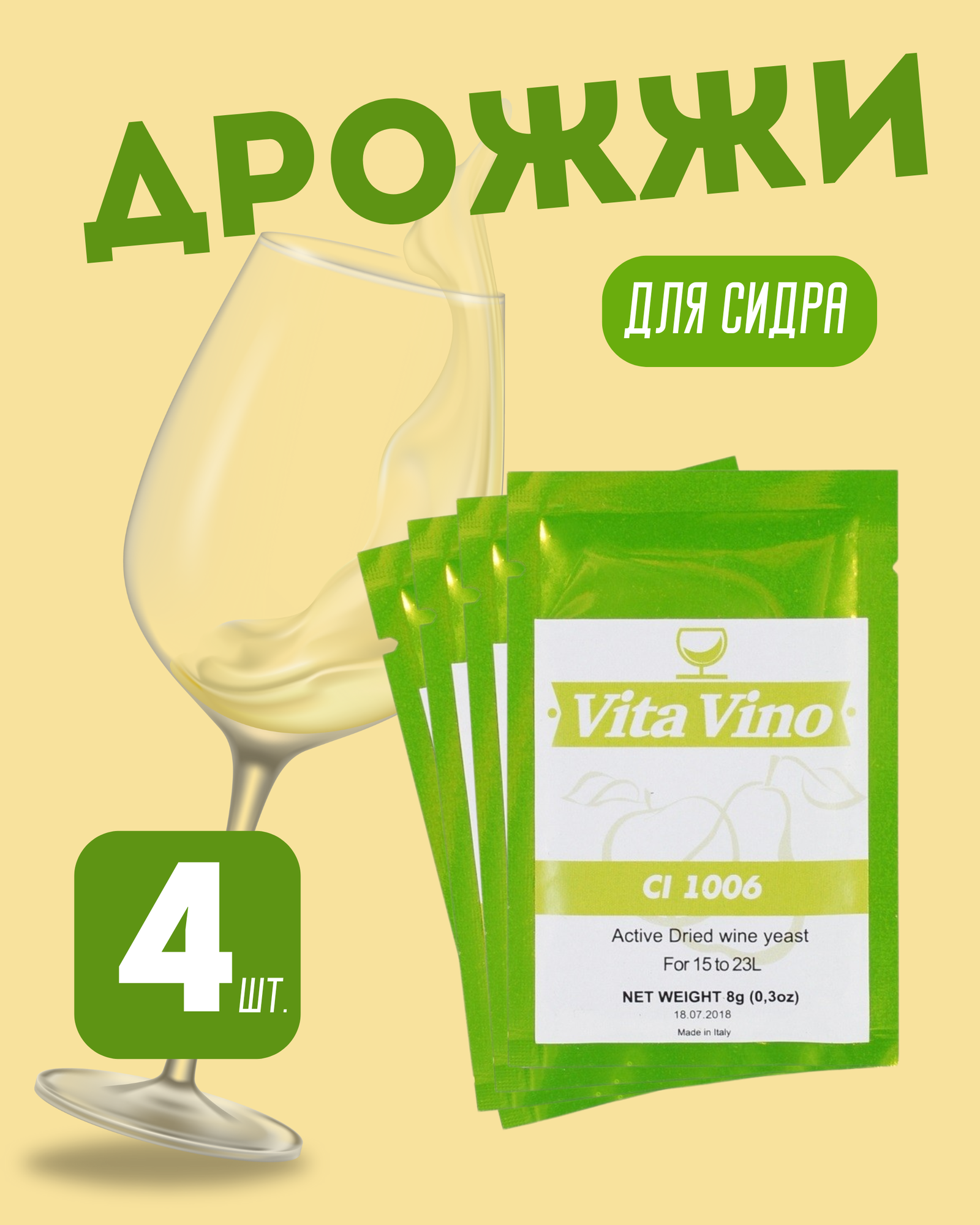 Купить Винные дрожжи Vita Vino CL-1006 для сидра из яблок и груш - 4 упаковки
