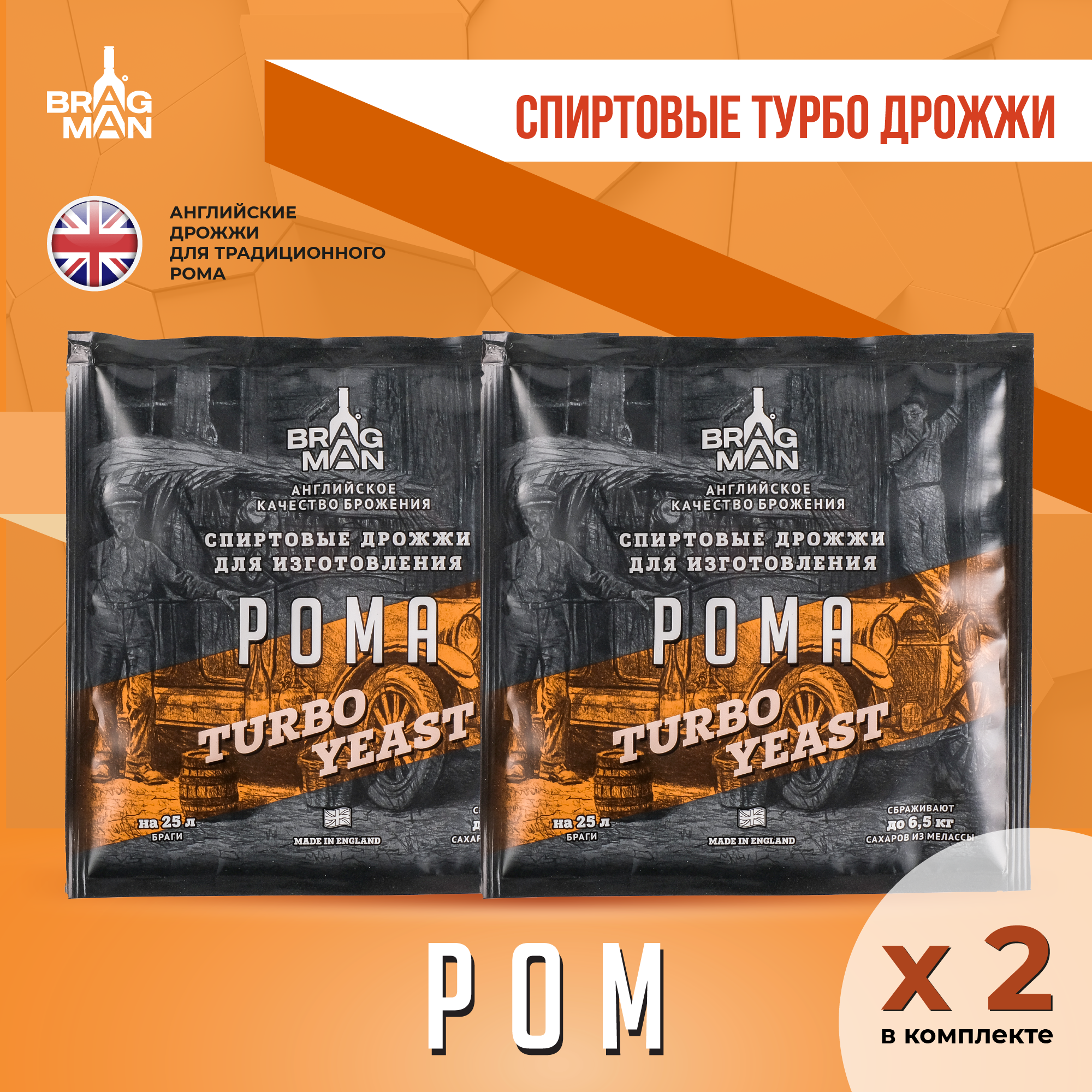 Спиртовые дрожжи Bragman "Rum Turbo", 72 г, 2 шт. интересное: