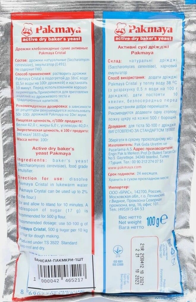 Активные сухие дрожжи Pakmaya Crystal 100г интересное: