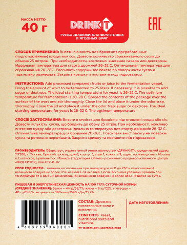 Дрожжи для фруктовых и ягодных браг DRINKIT FRUIT (дринкит фрут), 3х40гр интересное: