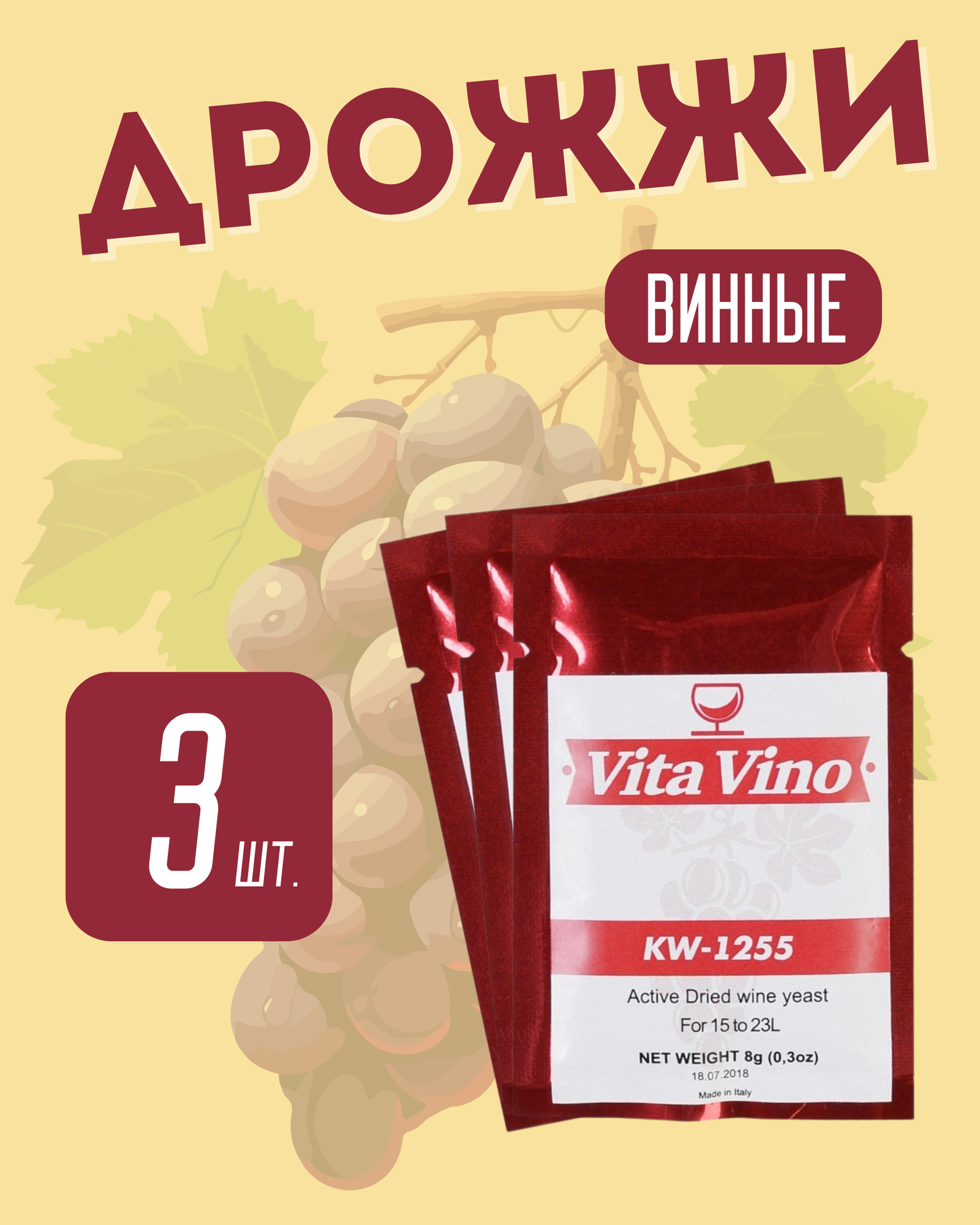 Купить Дрожжи винные Vita Vino KW-1255, 3 упаковки