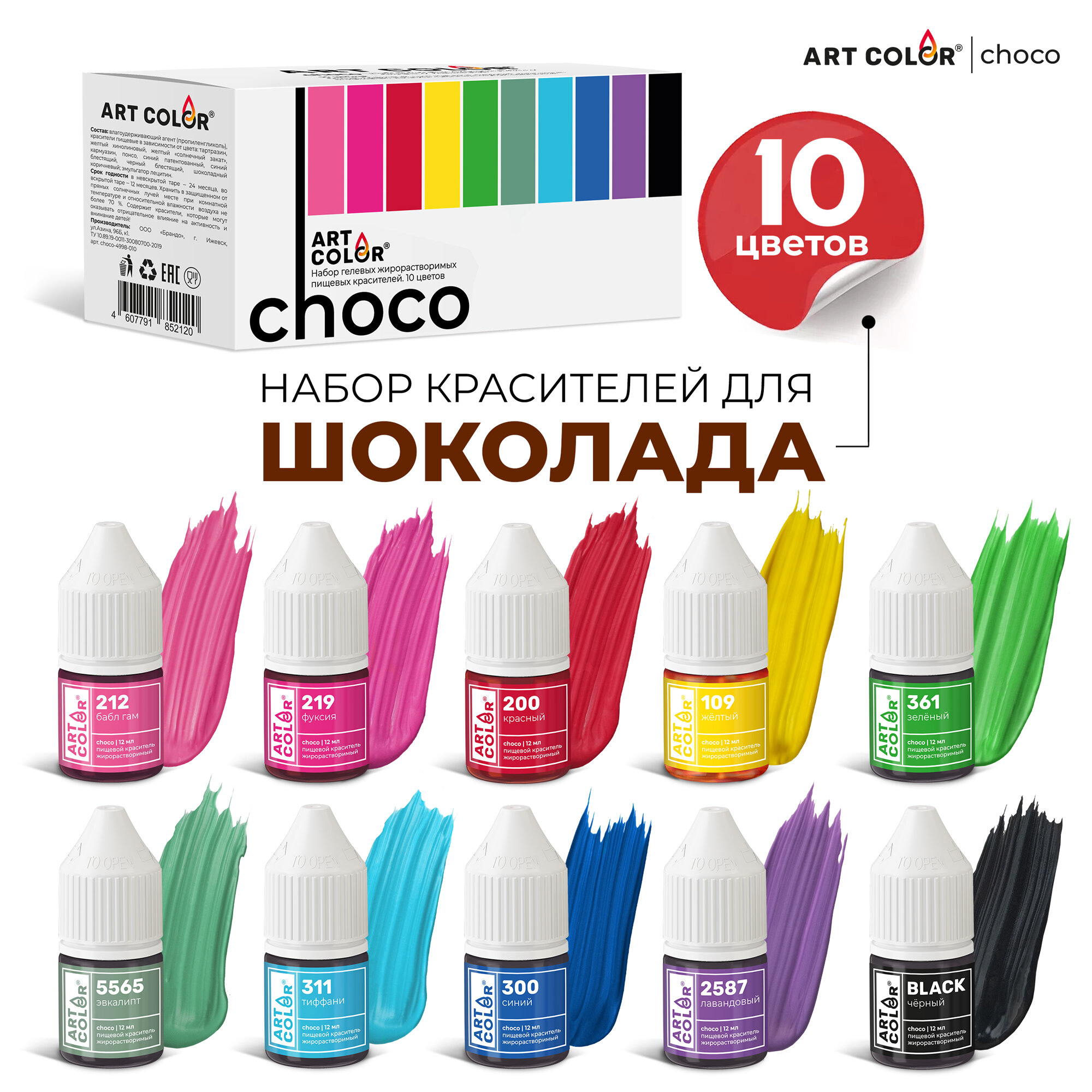 Купить Набор пищевых гелевых жирорастворимых красителей ART COLOR Choco, 10 цветов