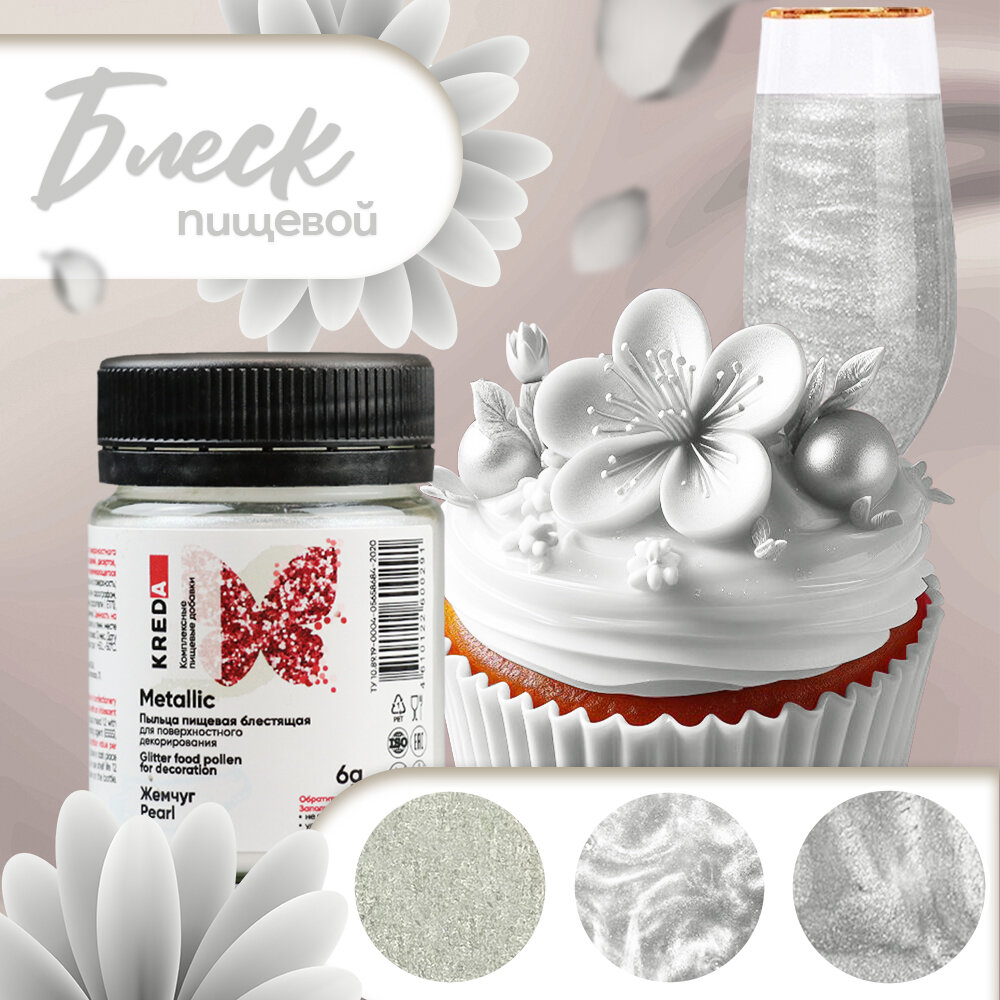СохранитьПищевой краситель сухой блестящая пыльца Kreda Metallic жемчужный №12 (6 г) интересное: